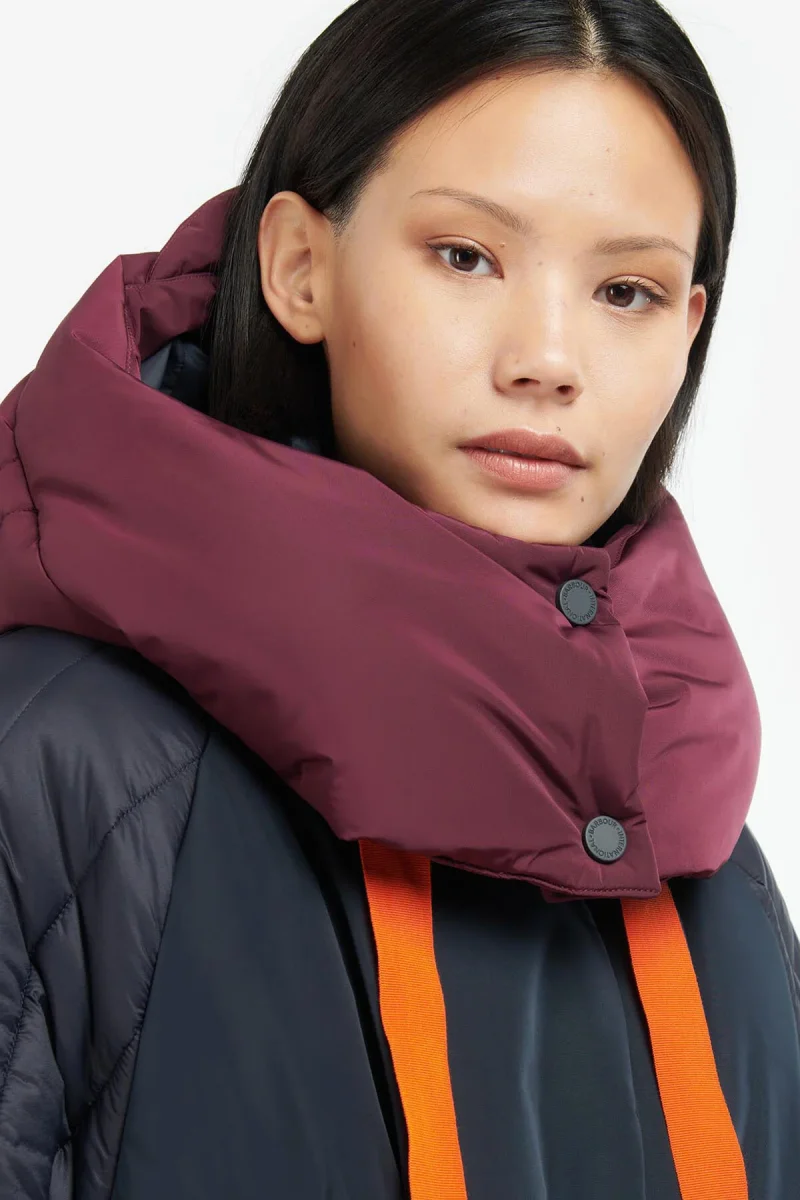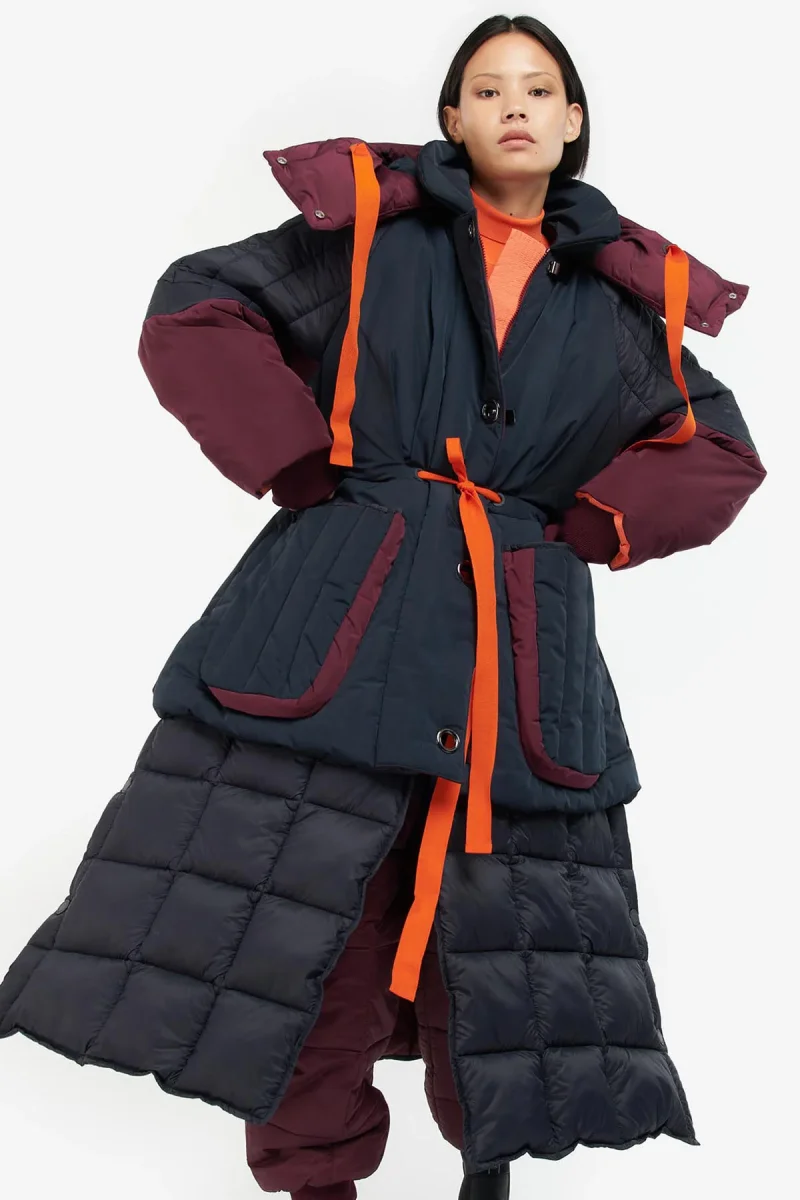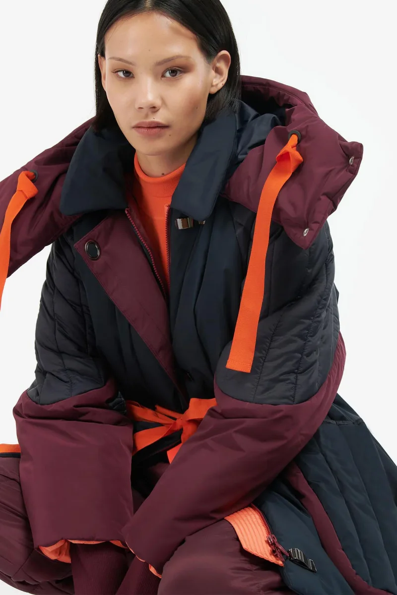 La collaborazione Barbour International x Roksanda celebra l’unione di colore e le forme attuali, per una perfetta fusione di stili. La giacca trapuntata Barbour International x Roksanda Lyuba è caratterizzata da un design oversize, taglio allungato, con coulisse a contrasto in vita, che aggiunge un tocco di colore e permette di evidenziare la silhouette. Il cappuccio oversize aggiunge funzionalità, mentre gli inserti a contrasto sulle tasche e sulle maniche sono il tocco inconfondibile di Roksanda.