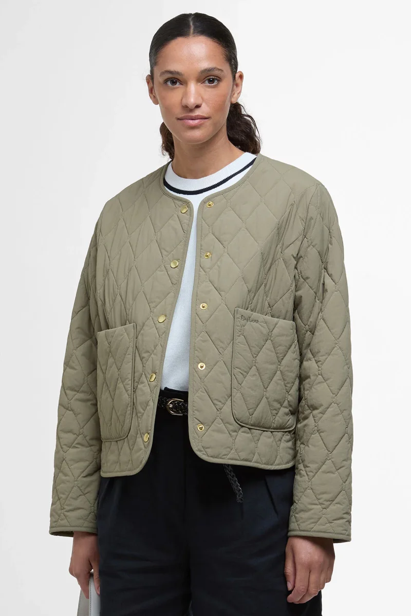 La giacca trapuntata Monroe di Barbour presenta un taglio svasato leggermente più corto del normale e un motivo con trapuntatura a rombi all-over. Potrai indossarla sia per andare in ufficio che per una cena elegante. Caratterizzato da una chiusura con bottoni a pressione dorati sul davanti e due profonde tasche a toppa, questo capospalla con scollo arrotondato regala un tocco di modernità alla classica giacca trapuntata.