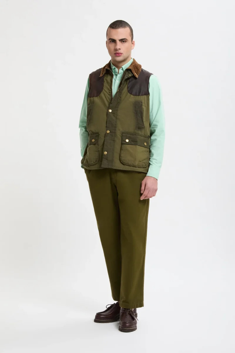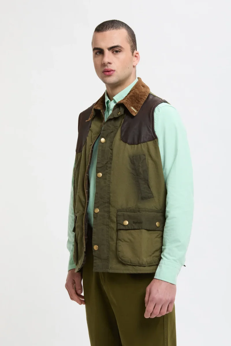 Barbour e WP hanno collaborato per creare il pacchetto SMU, una mini collezione pensata per riportare in vita i capi Barbour provenienti dall’archivio WP, unendo il DNA di Barbour con quello heritage di WP. Il gilet cerato Bedale è una riedizione di un capo storico, reinterpretato con tecniche moderne che riproducono fedelmente tutti gli elementi iconici. Il gilet è realizzato con materiali di alta qualità, tra cui pelle di manifattura inglese, e presenta un esterno cerato lavato con l’uso di pietre e soda. L’interno è foderato in tartan classico. È caratterizzato da due tasche a toppa e due tasche a filetto sul davanti, con una chiusura a bottoni per un tocco senza tempo.