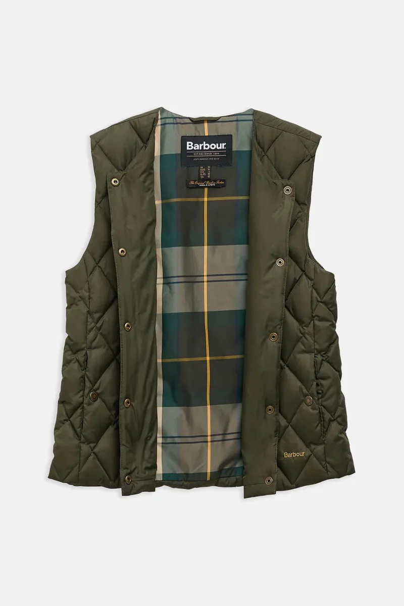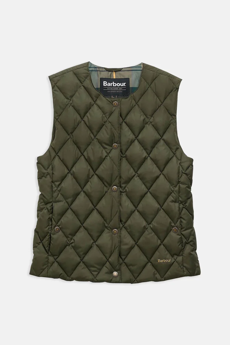 Barbour si distingue per la praticità dei suoi capi e la sua cura dei dettagli, e il gilet in piumino d’oca Fiona ne è la dimostrazione perfetta. Pensato per offrire un calore ottimale nelle giornate più fredde, può essere indossato sopra una classica T-shirt o portato sotto una delle nostre iconiche giacche cerate per un isolamento termico ottimale.