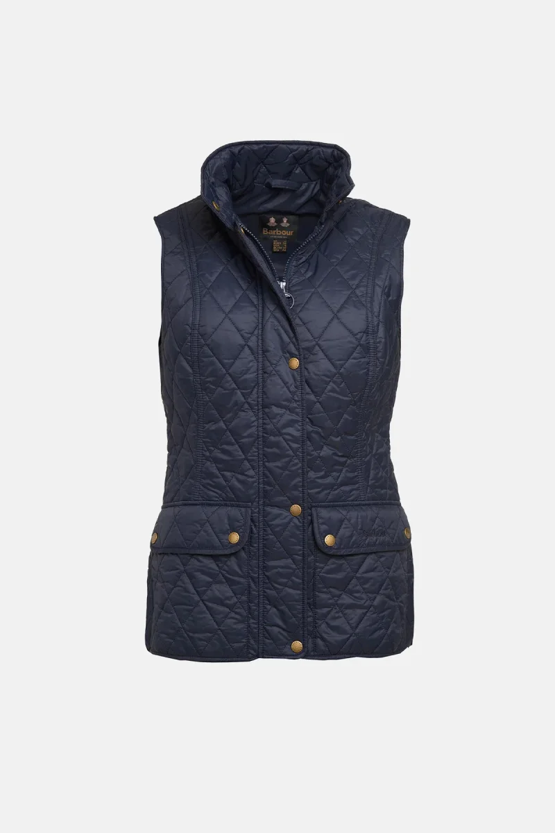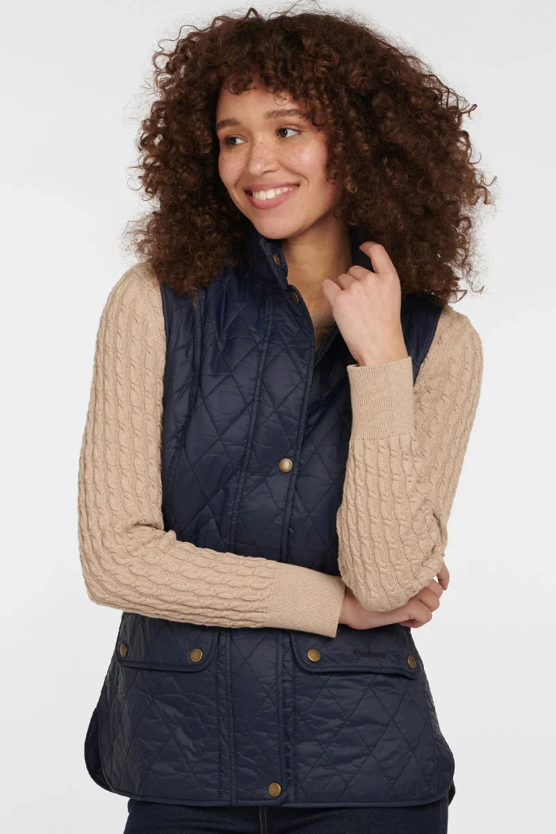 Il gilet Barbour Otterburn è un modello trapuntato a diamante con i bordi stondati e profonde tasche applicate con patte chiuse con bottoni a pressione. Laccetti con chiusura laterale in vita permettono di regolare la vestibilità classica per una maggiore definizione o per adeguarsi agli strati sovrapposti, mentre la fettuccia in tinta aggiunge un tocco finale di qualità.