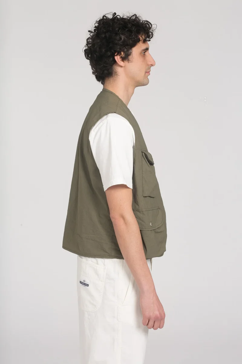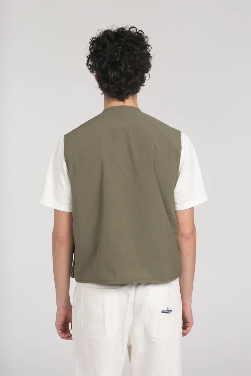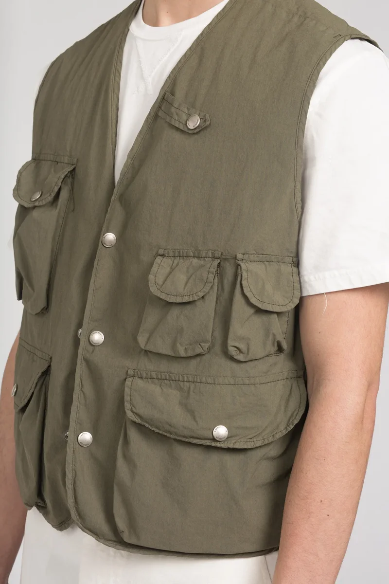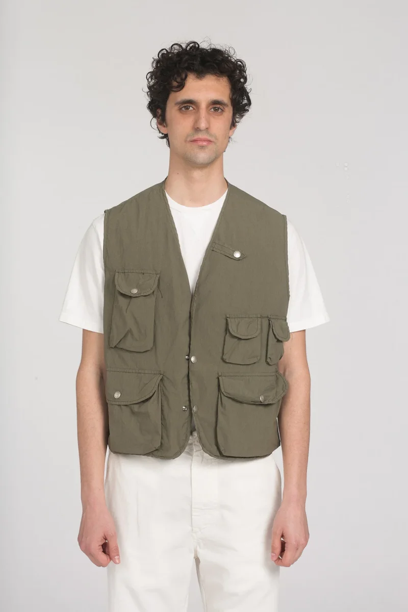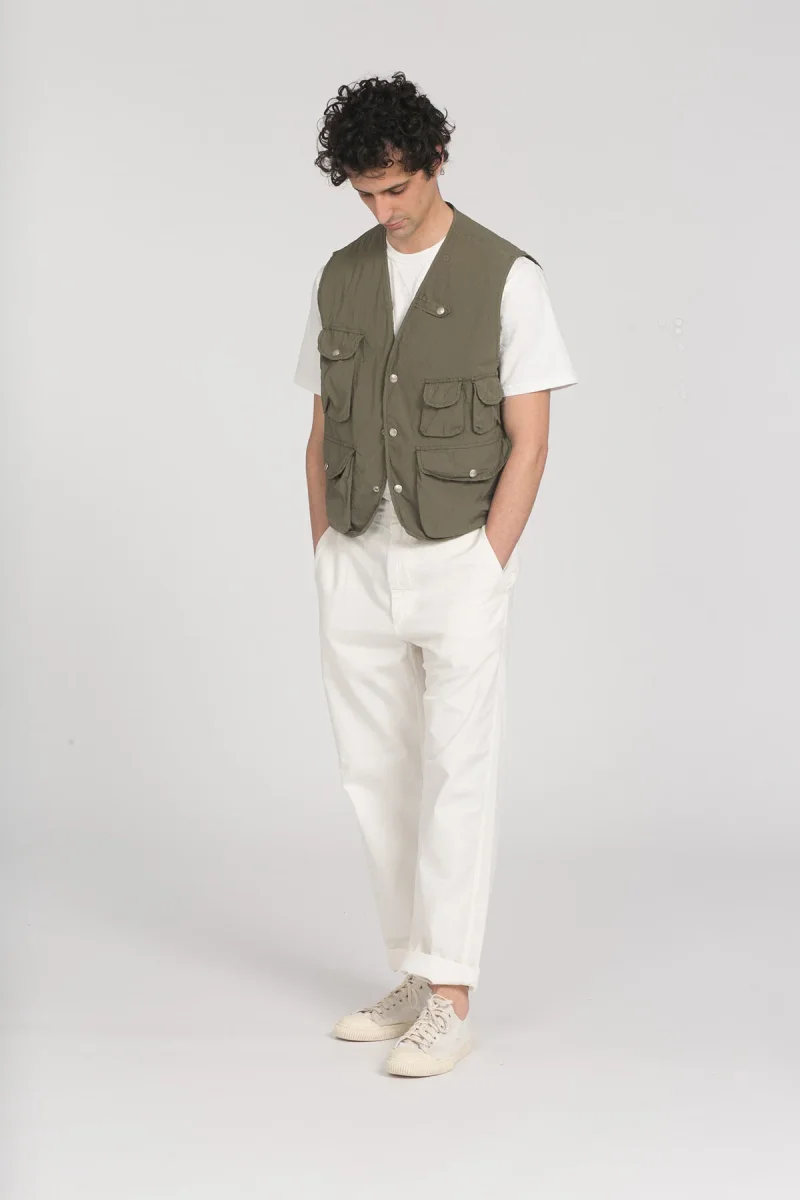 Gilet tecnico in tessuto leggero mix nylon e cotone, con patiche tasche a chiusura con bottone. Made in Italy.