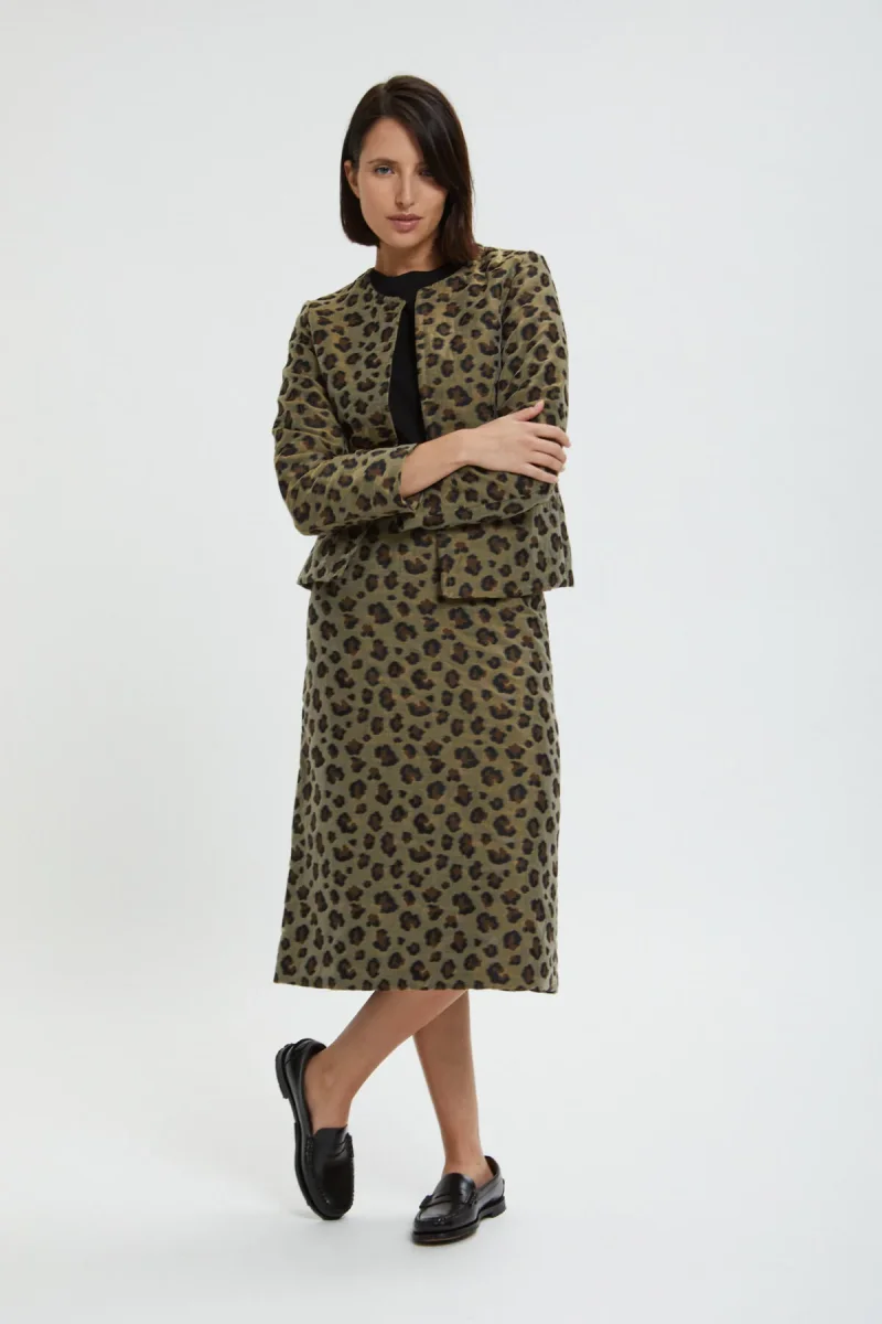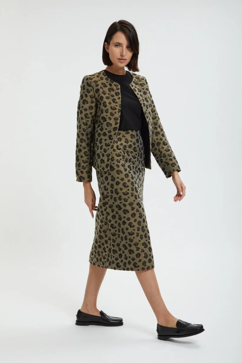 La gonna C.C. è un capo versatile, adatto alla vita di tutti i giorni ma perfetto anche per un evento formale. Si caratterizza per il suo design semplice e pulito che si abbina perfettamente all’eccentrica stampa animalier che la caratterizza. Realizzata in un materiale jacquard molto particolare, può essere indossata con la giacca C.C. Leopard abbinata, anch’essa disponibile su Wpstore.it.