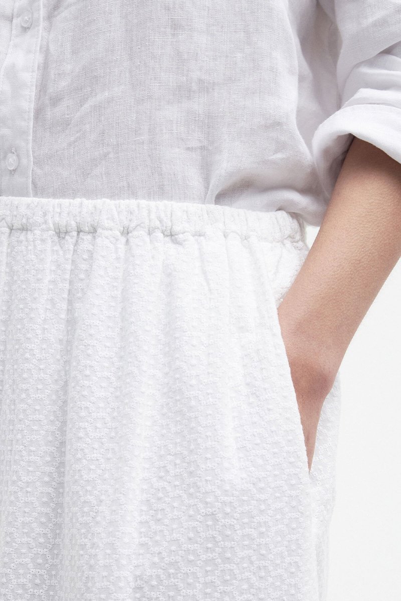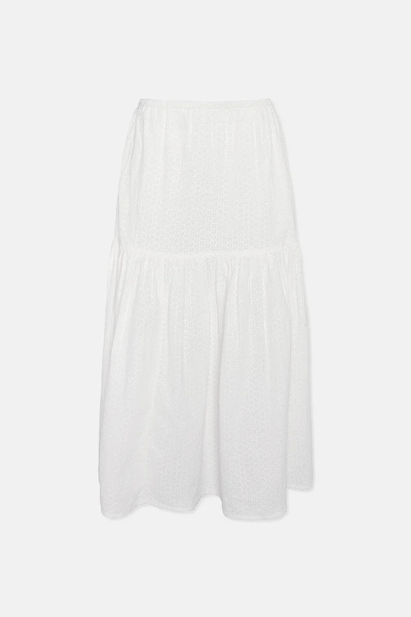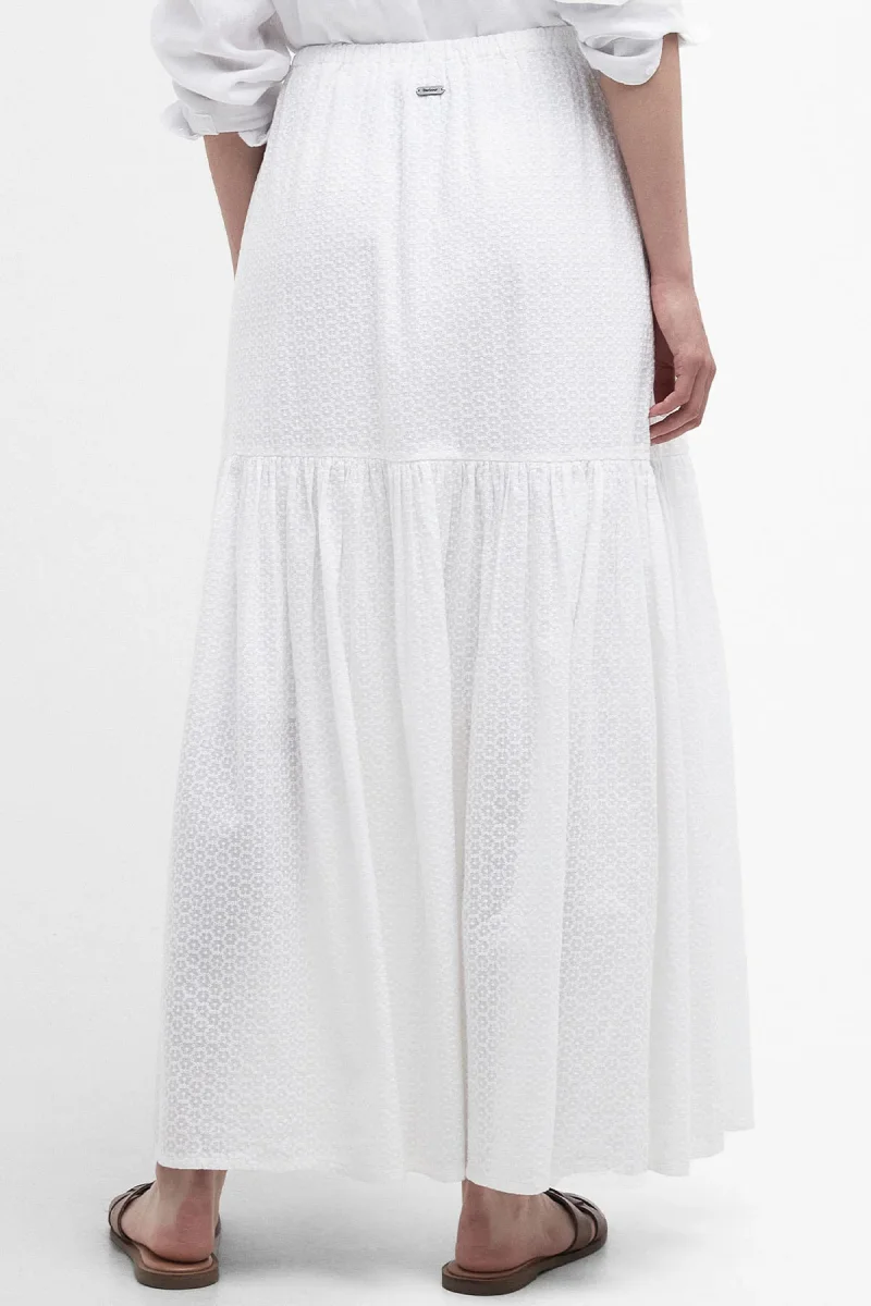 La gonna midi in pizzo sangallo bianco è il must-have dell’estate. Fresca e leggera, aggiunge una nota di femminilità a qualsiasi outfit. Perfetta da abbinare a una T-shirt e un paio di sneakers, la gonna midi Kelley di Barbour è destinata a diventare un capo irrinunciabile per quest’estate e le stagioni a venire.