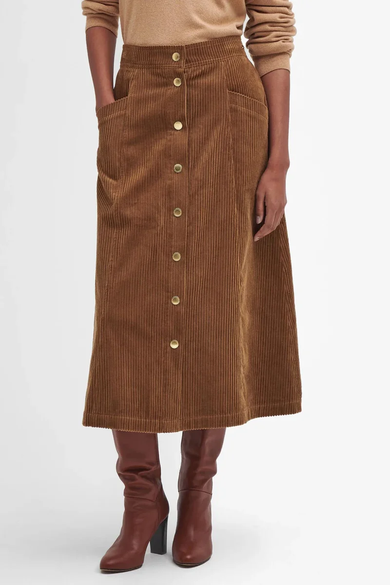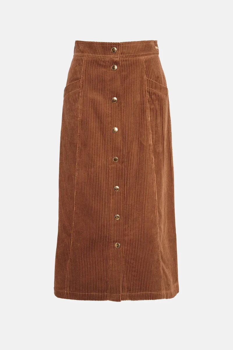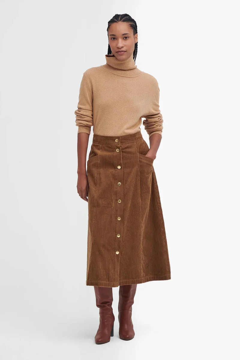 Se vuoi aggiungere un tocco unico al tuo guardaroba ma non sei amante dei colori o delle stampe vivaci, la soluzione migliore è giocare con le texture. Realizzata in morbido velluto di cotone e dotato di tasche oblique che offrono spazio extra, la gonna Samara midi a coste sottili di Barbour è un modello dal taglio svasato sofisticato e senza tempo. Dotato di una chiusura con bottoni a pressione in ottone lucido e una barretta identificativa in vita, questo versatile modello si abbina facilmente a camicie e T-shirt.