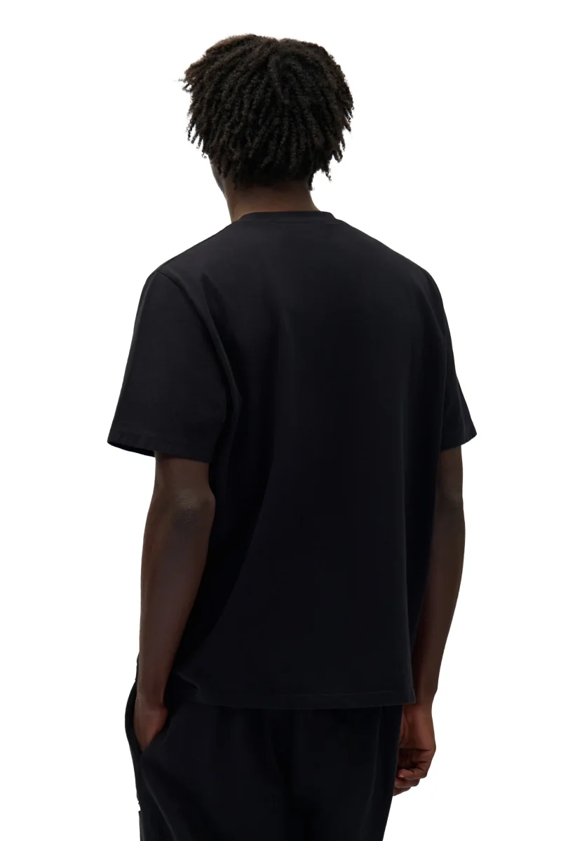 Realizzata in cotone premium heavyweight, questa T-shirt nera presenta una vestibilità rilassata e un girocollo leggermente più alto, garantendo comfort e stile in ogni occasione.