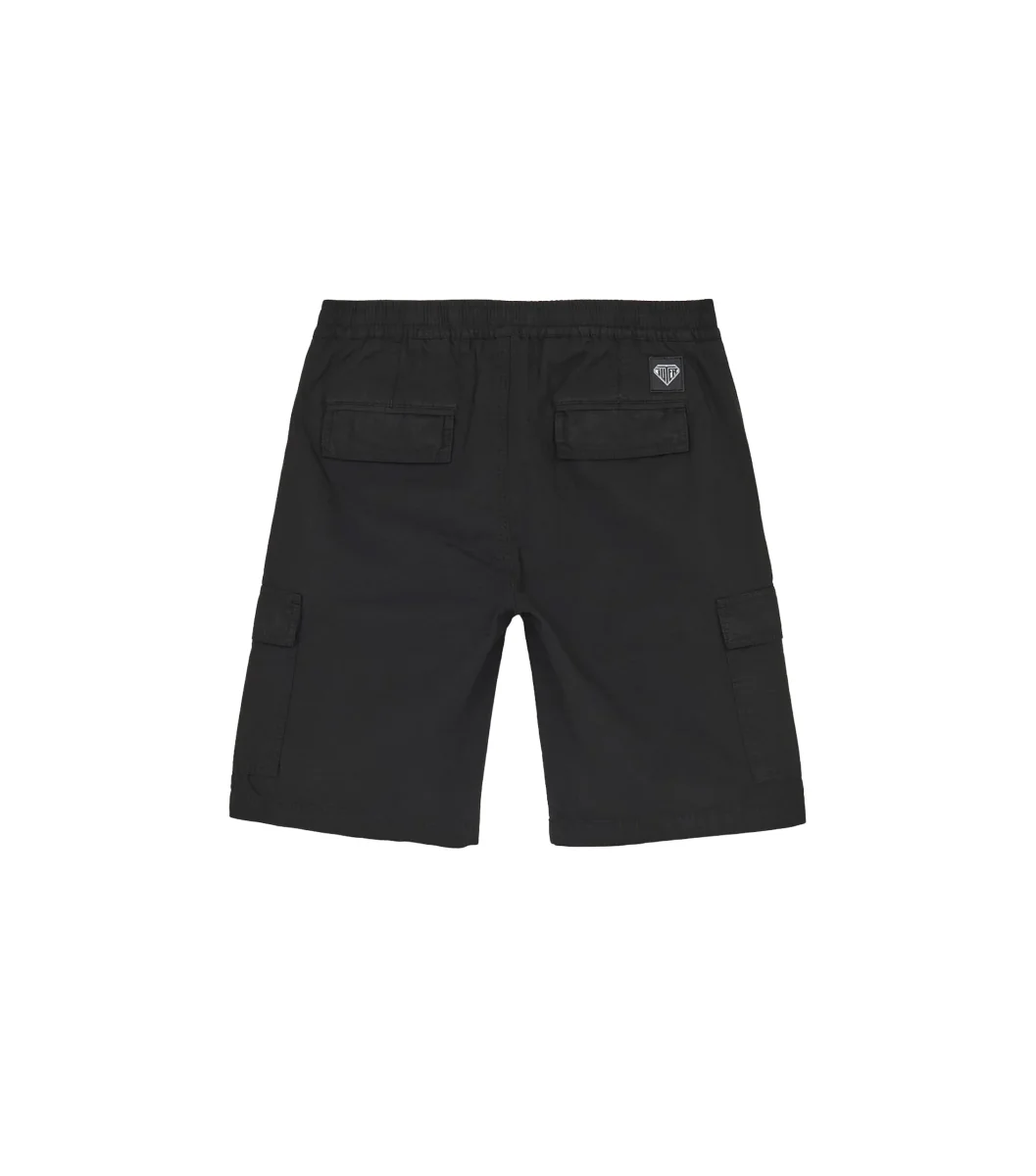 Pantaloni corti Iuter modello cargo ripstop shorts colore nero con tasche laterlai e patch logo ricamata 100% cotton Made in Italy.