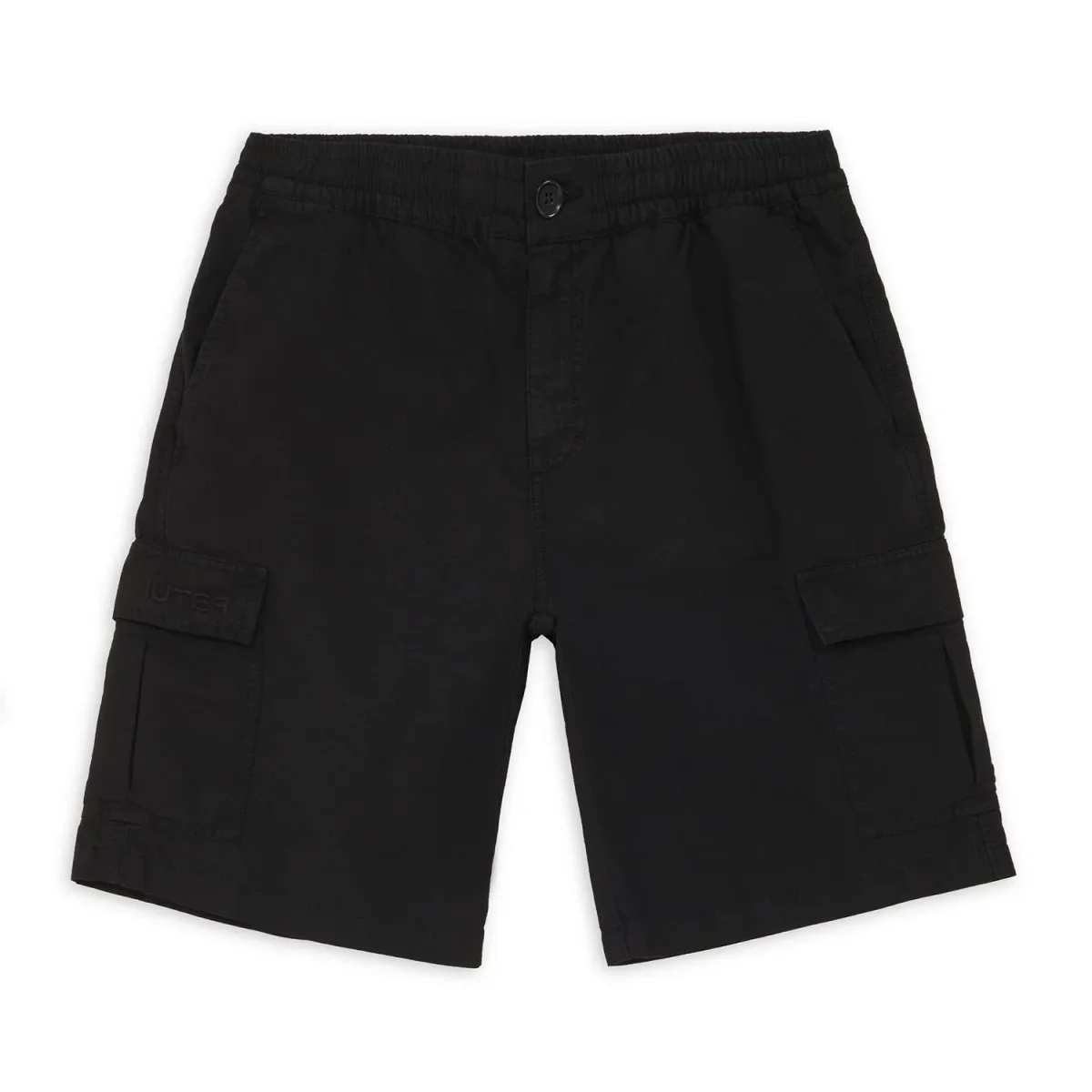 Pantaloni corti cargo Iuter colore nero da uomo con logo ricamato frontale 100% cotton Made in Italy.