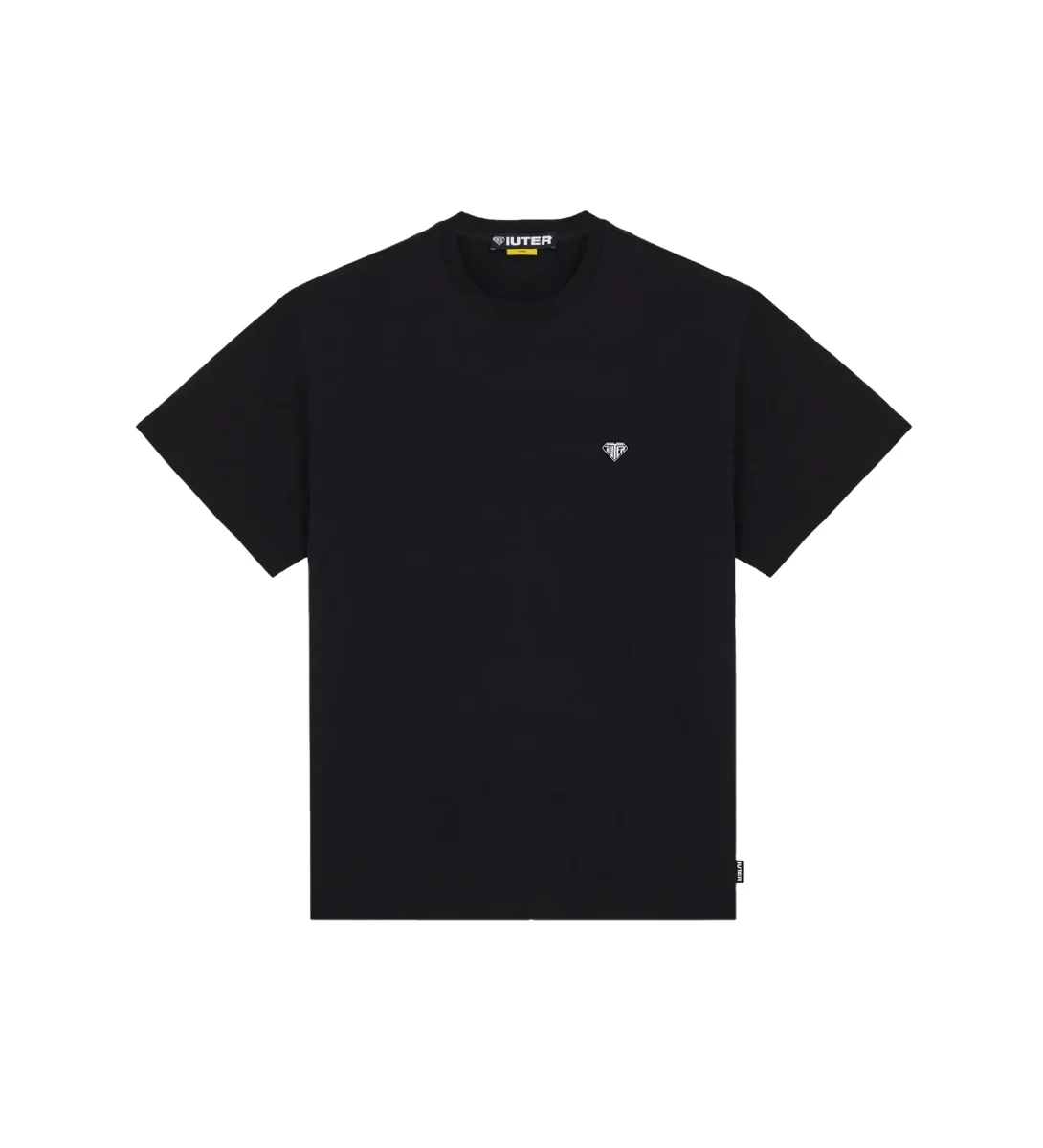 T-shirt Iuter modello heart logo tee colore nero con logo stampato frontale 100% cotton Made in Italy.
