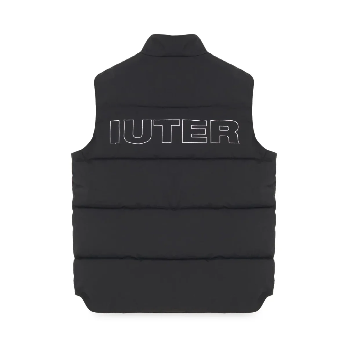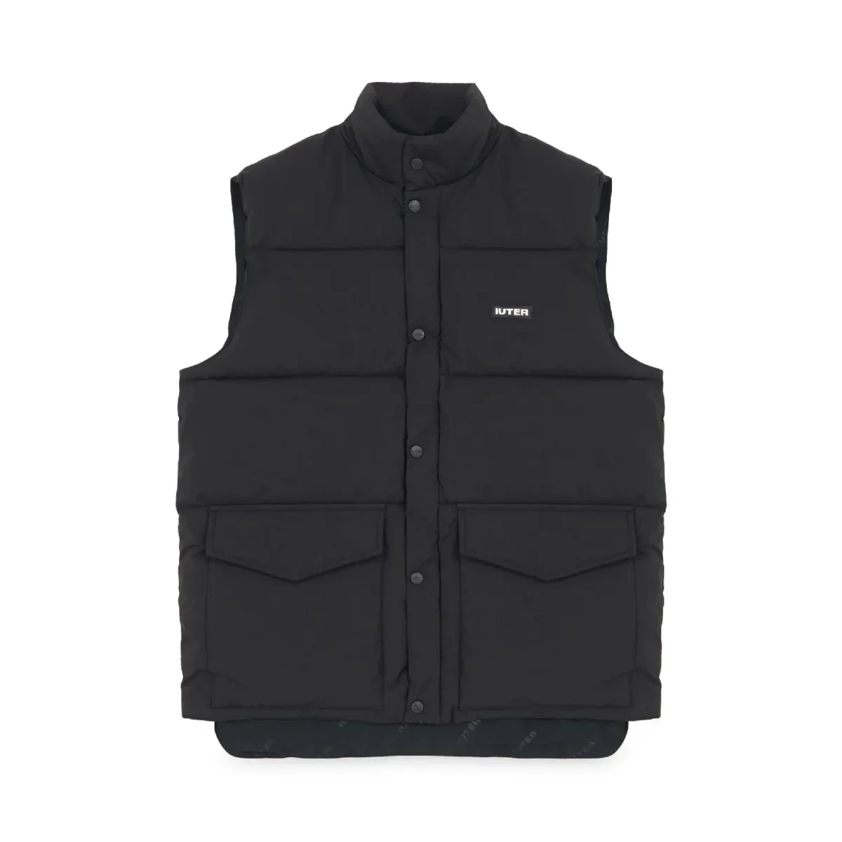 Gilet Iuter colore nero da uomo modello puff vest con chiusura frontale e tasche patch logo cucita. Imbottitura interna per essere indossato sopra una felpa.