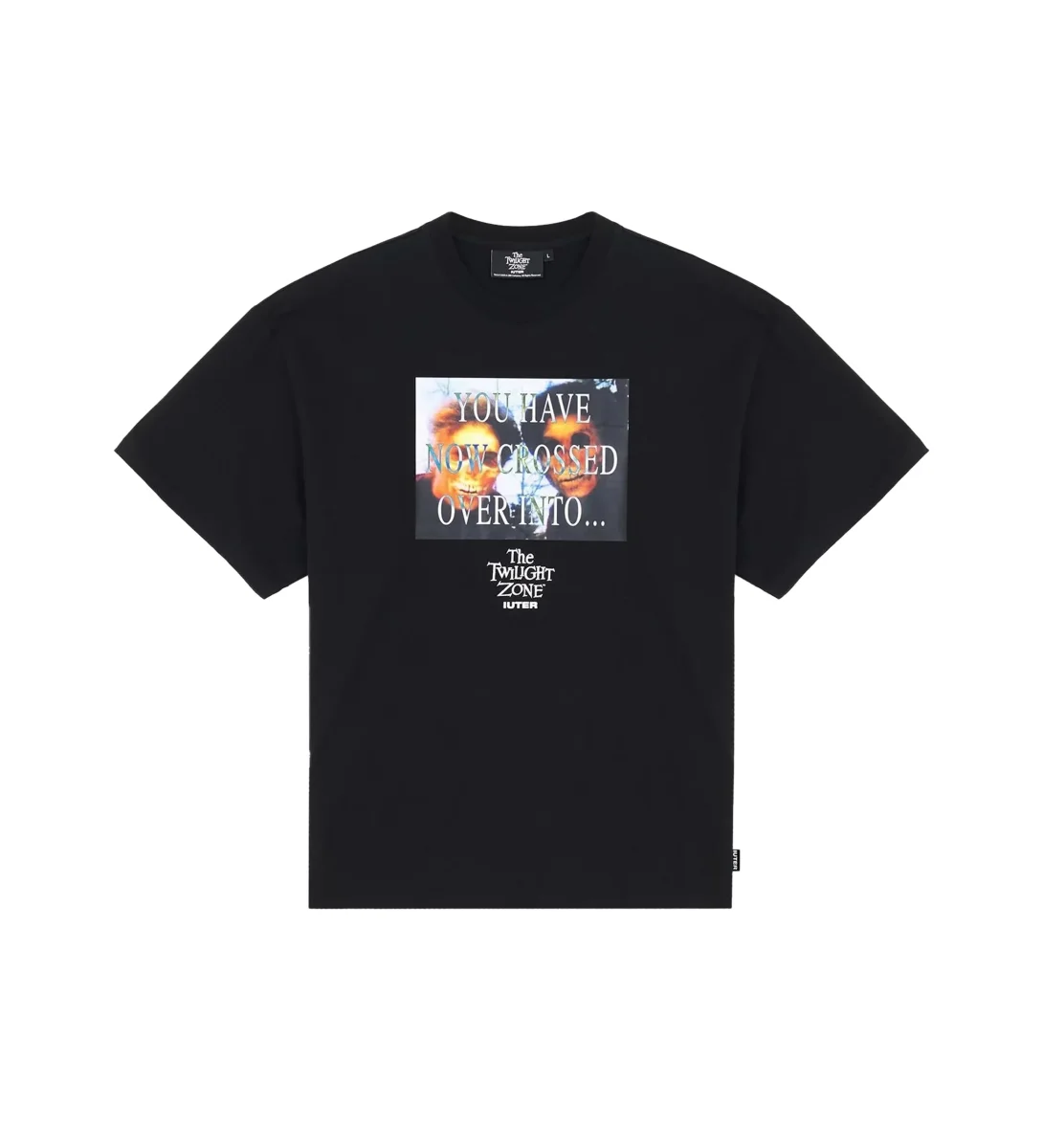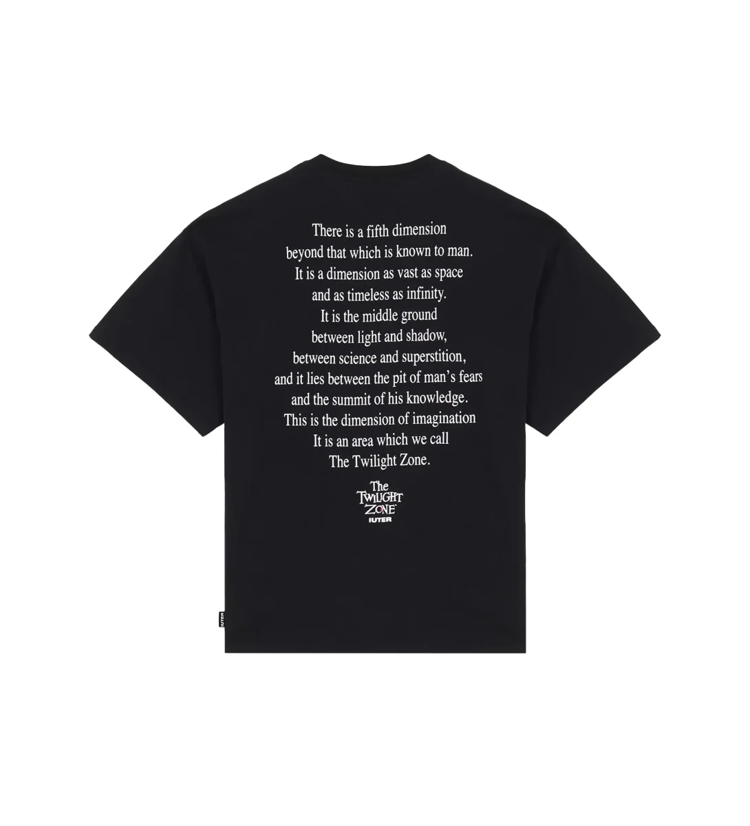 T-shirt Iuter modello the twilight zone tee colore nero con stampa front e retro 100% cotton Made in Italy.