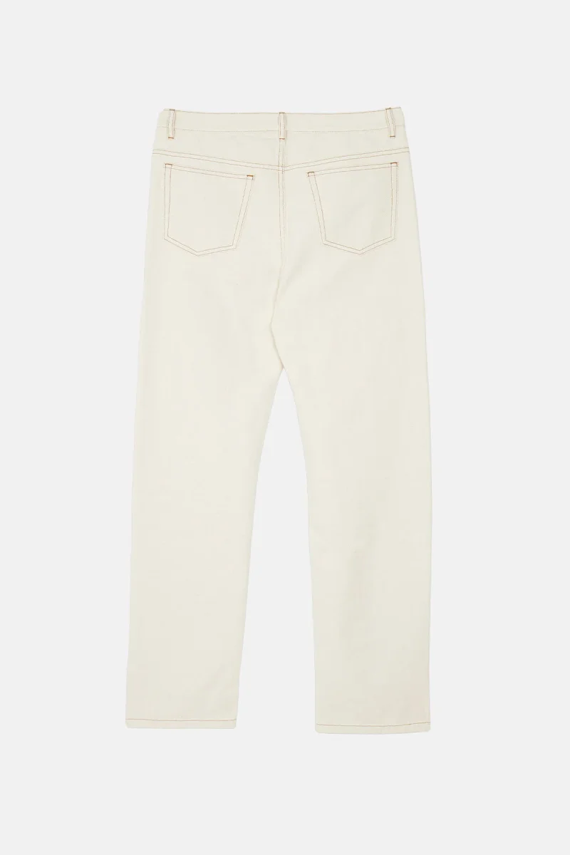Jeans con chiusura frontale con abbottonatura e zip a scomparsa. Realizzati in cotone, presentano cinque tasche.