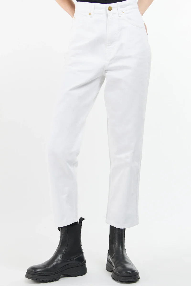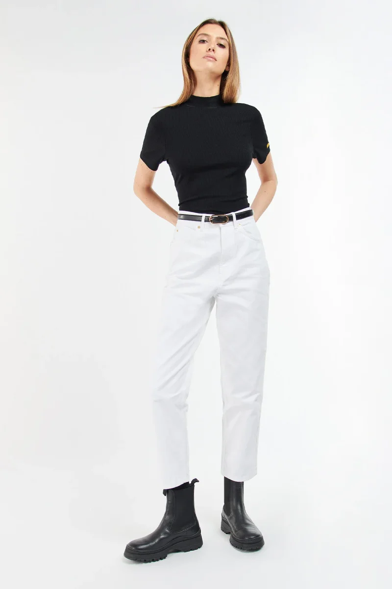 I jeans a vita alta Barbour International Garcia hanno un design a gamba dritta e chiusura con bottoni resi ancora più elegandi dal logo del brand. Perfetti da indossare con scarpe da ginnastica o sandali, questi jeans sono in cotone 100% . Il dettaglio della toppa in pelle sul retro completa il capo.