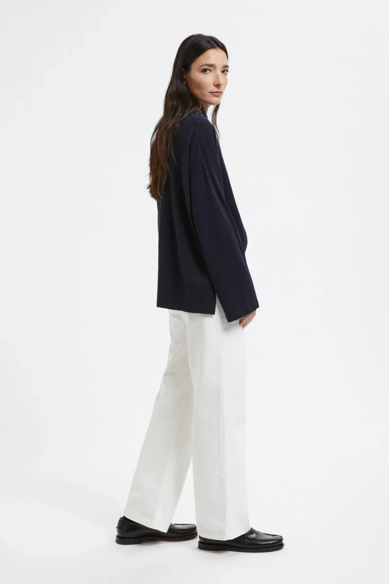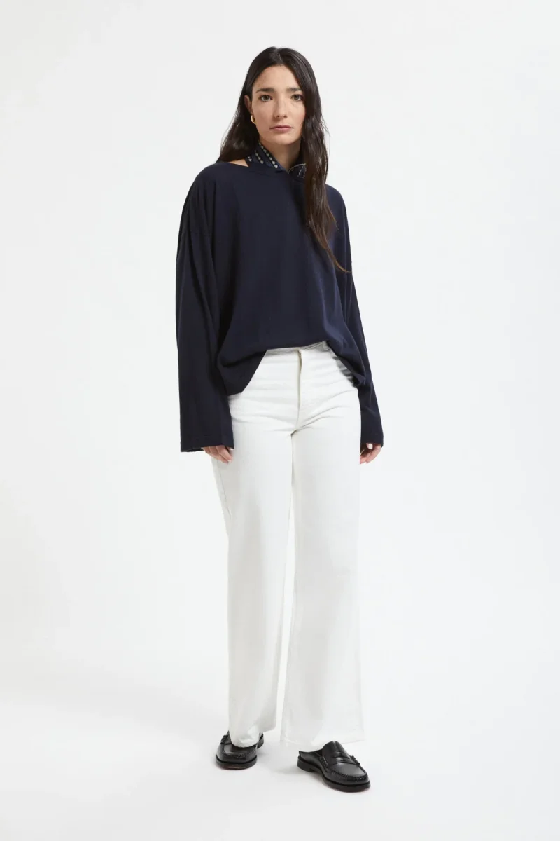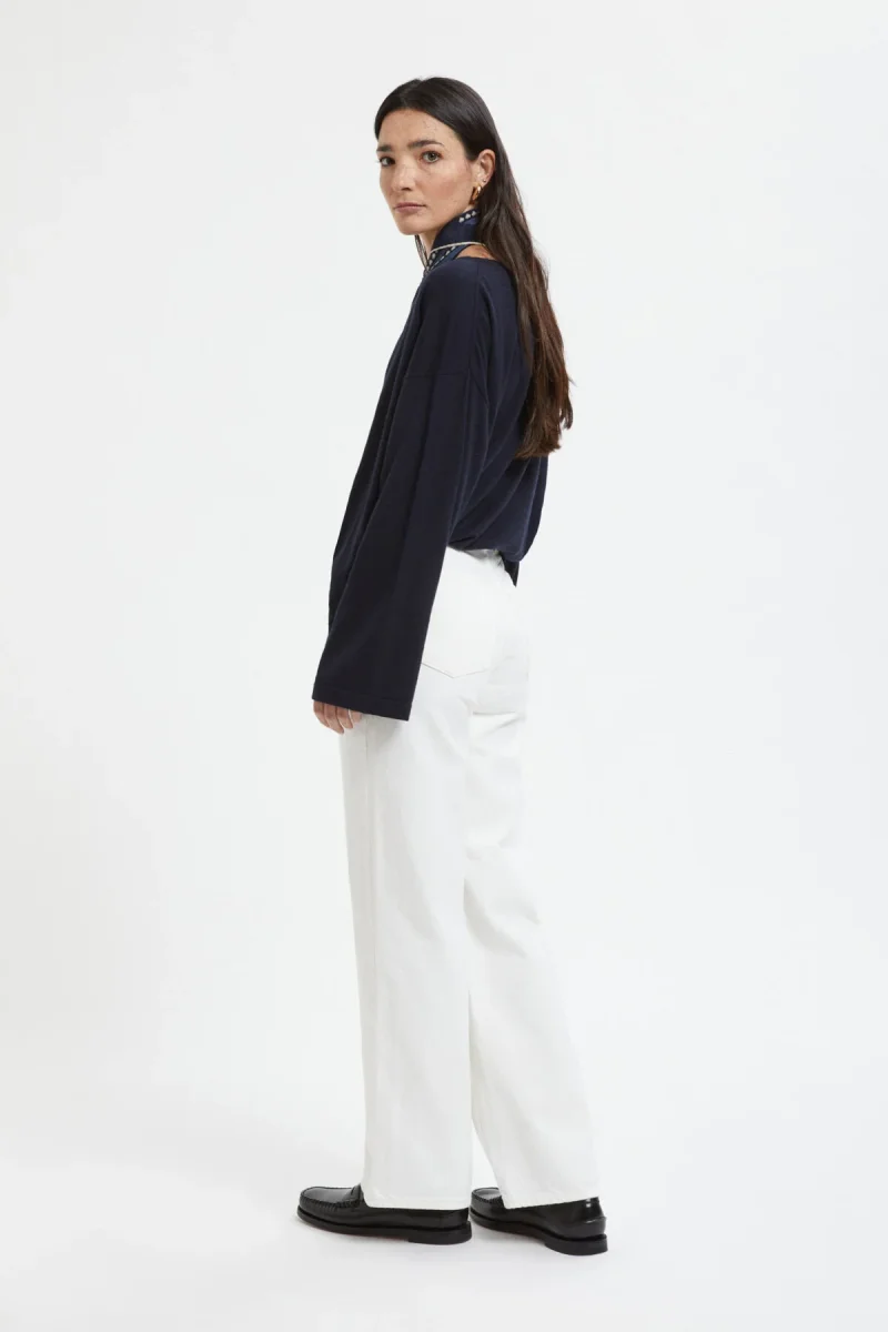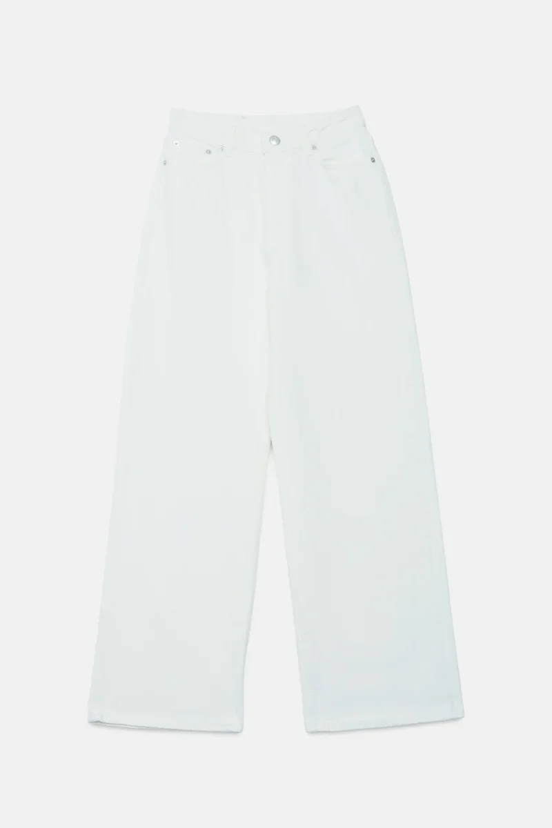 I jeans Wide di Holzweiler sono un modello a cinque tasche realizzato in denim di puro cotone biologico. Presentano vita alta, ricamo tono su tono del logo H sulla tasca portamonete e comode gambe larghe.