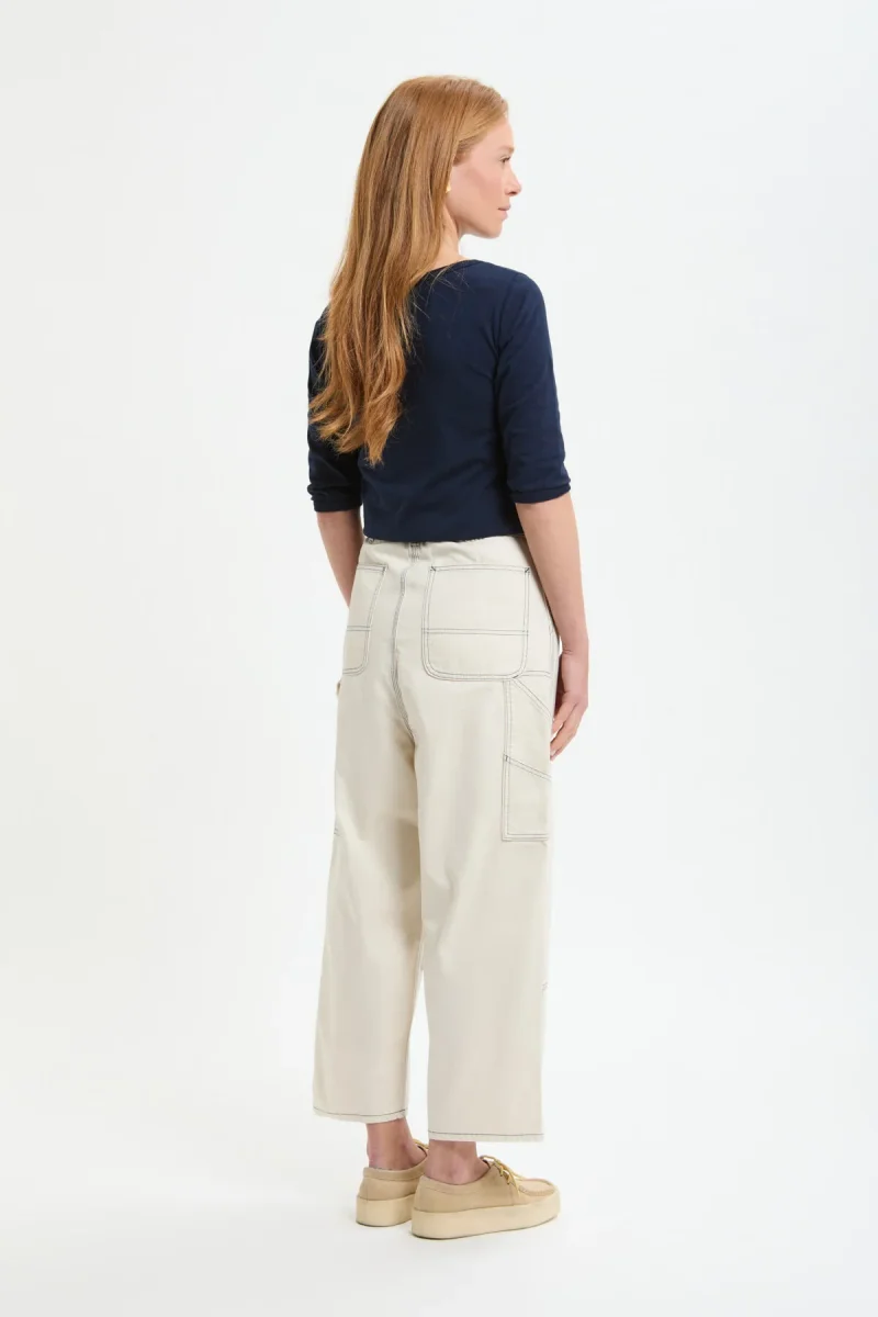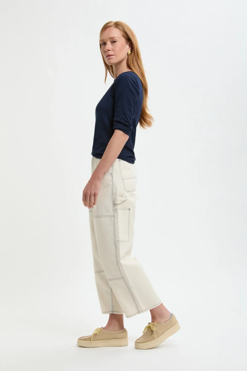 Lanciato nel 1998, BEAMS BOY prende ispirazione dal classico menswear americano per creare un guardaroba funzionale al femminile. I pantaloni Knee Painter, con rinforzo sulle ginocchia, richiamano il workwear tradizionale e aggiungono un tocco utility che ci conquista.