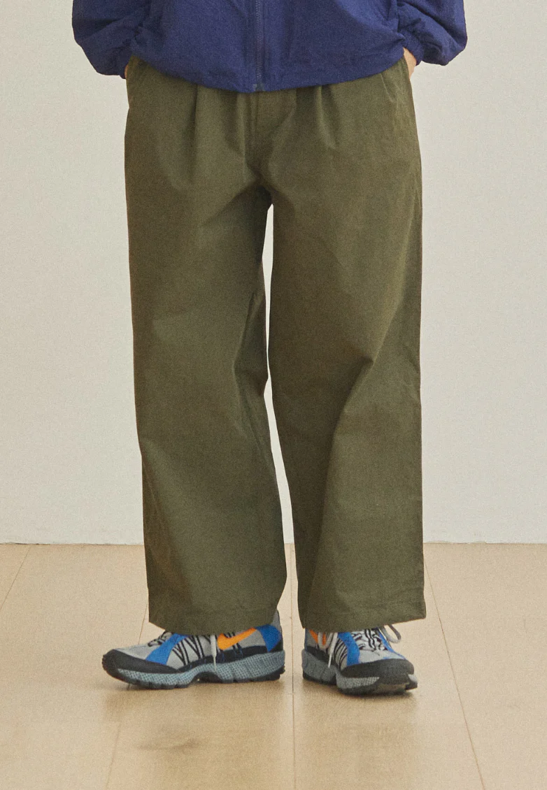 I Kappy Two Tuck Wide Pants Khaki sono pantaloni wide con taglio pulito e due pinces che danno volume davanti e una caduta più “tailored” ma sempre rilassata. Il khaki è uno dei colori più facili da usare in chiave street/minimal: sta bene con bianco, nero, navy, grigi, ecru e con tutte le tonalità earth. Li metti con t-shirt e sneakers e sei a posto, oppure con camicia/overshirt e loafer per un look più smart senza rigidità. Se vuoi un pantalone versatile, comodo e con una silhouette ampia fatta bene, questo è quello giusto. SKU: TKWCPKH