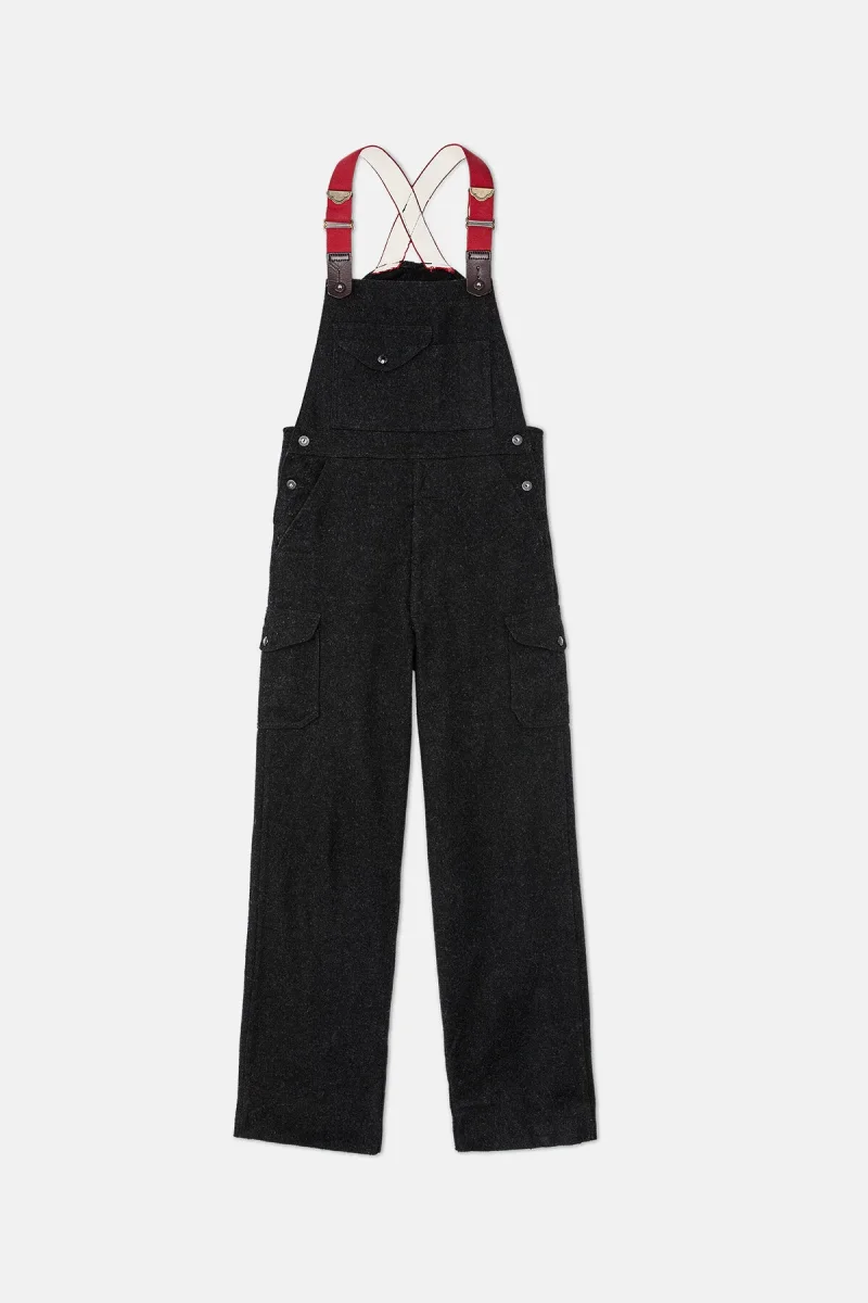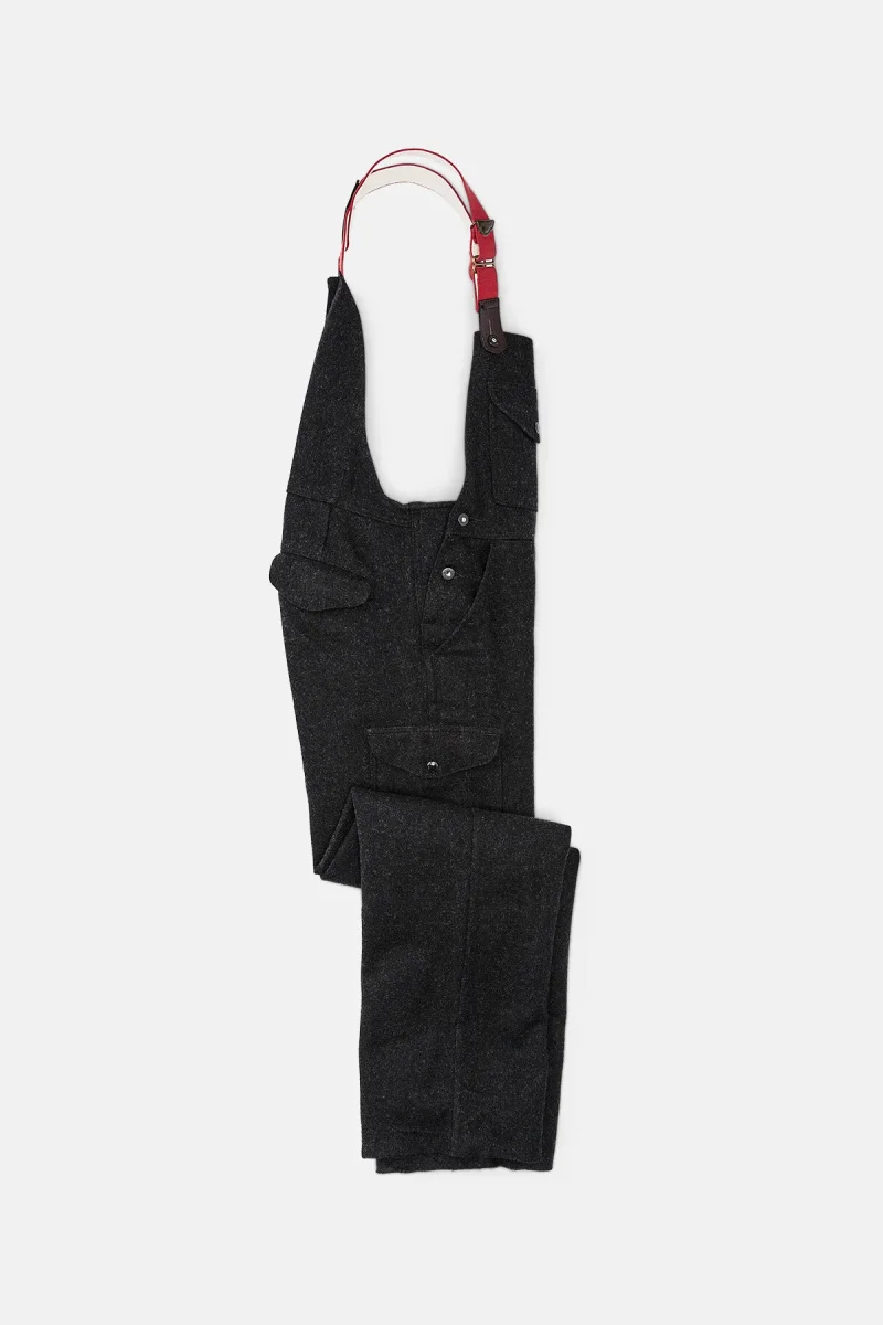 La salopette, naturalmente idrorepellente ed estremamente resistente, è realizzata al 100% in lana vergine. I soffietti laterali con abbottonatura agevolano la libertà di movimento e isolano anche quando il capo è bagnato. Nove tasche consentono di riporre oggetti e le bretelle regolabili all’infinito sono provviste di elementi in pelle Bridle Leather.