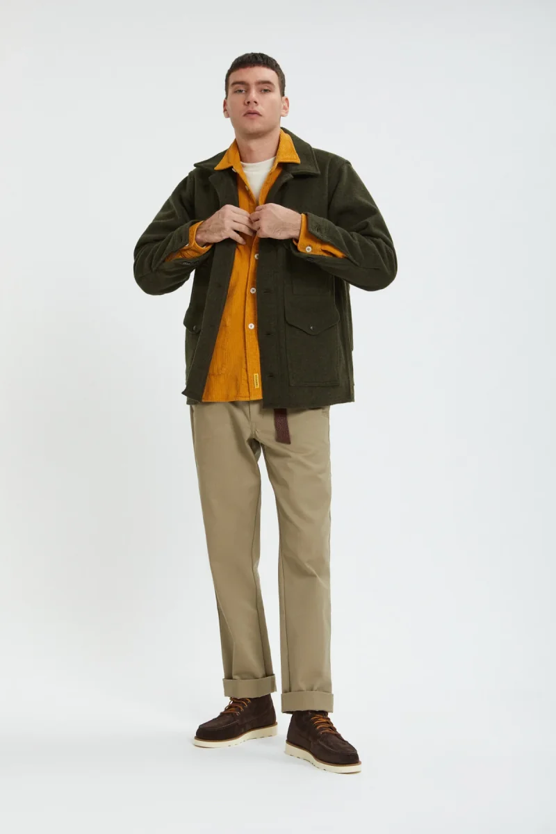 La nostra Cruiser in lana Mackinaw è la protezione dal freddo più efficace e versatile di sempre: nulla regge il confronto quando si tratta di indossare una sola giacca, senza preoccuparsi dei cambiamenti improvvisi del clima. La lana Pantex è un materiale particolarmente resistente con una trama straordinariamente fitta che forma una barriera contro il vento pur rimanendo traspirante. La lana Mackinaw isola alla perfezione sia quando asciutta che quando bagnata: grazie alla sua complessa struttura in fibra, può assorbire l’acqua fino al 30% del proprio peso senza dare la sensazione di essere umida o appiccicosa. Con le quattro tasche con patta con bottone automatico sul davanti e una grande tasca per mappe/carte che copre l’intera schiena e due strati di lana coprono la maggior parte del busto, proprio dove è necessaria una maggior protezione dal freddo.