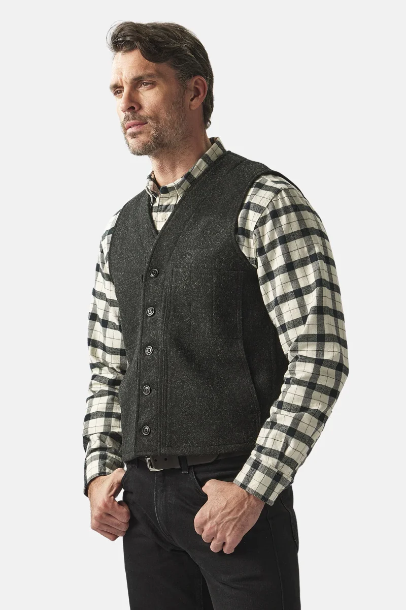Il gilet di lana Mackinaw è parte integrante dell’equipaggiamento outdoor e si adatta a qualsiasi ambiente.
