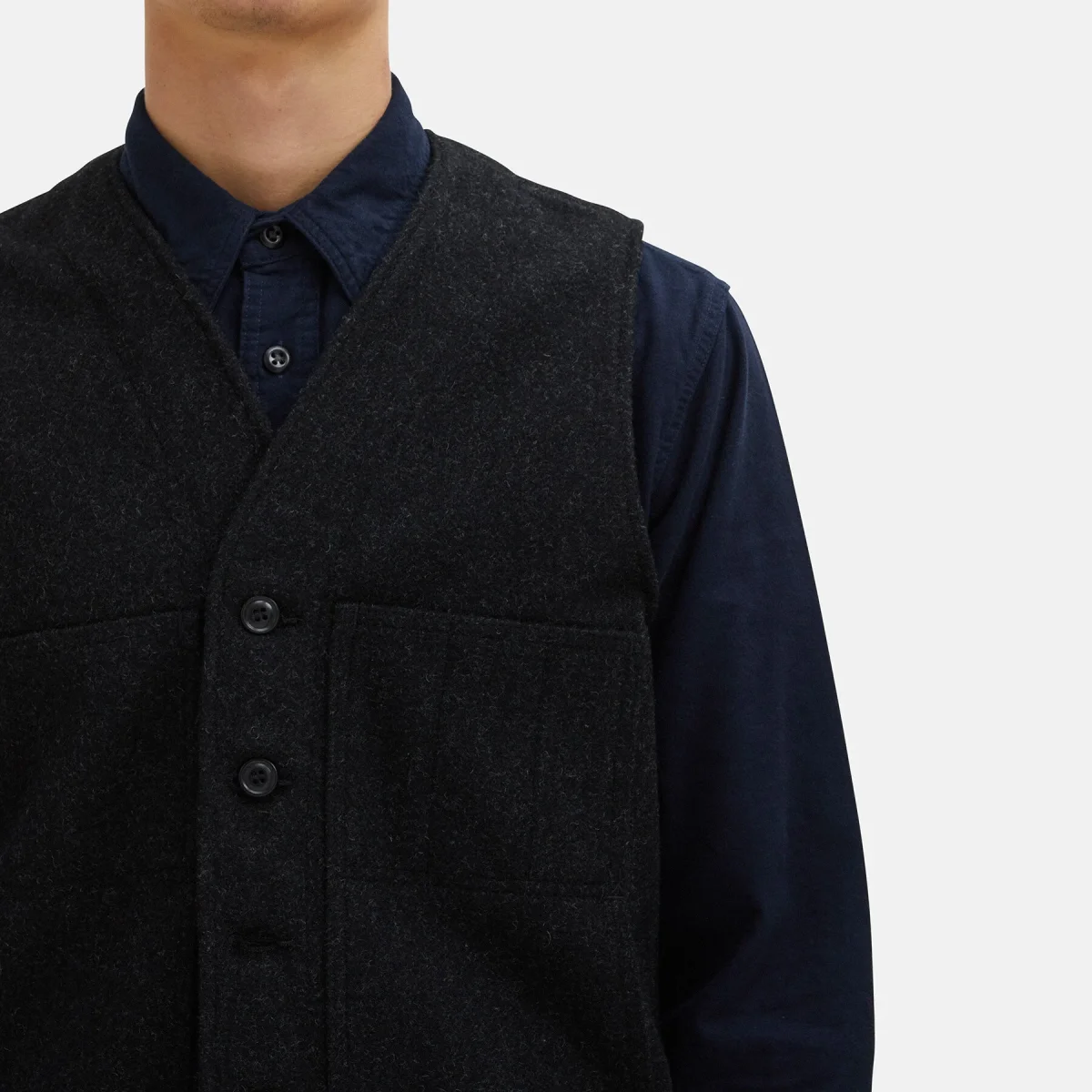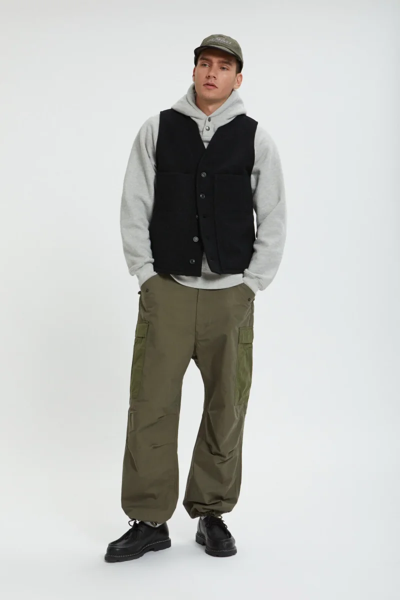 Il gilet in lana Mackinaw è altrettanto confortevole anche in ambienti di lavoro chiusi come magazzini, cantieri e uffici. Oltre a conferire un look classico, la scollatura a V non ingombra il collo e lascia spazio a una camicia pesante e a un impermeabile chiuso con una zip fino al mento. Le tasche per le mani hanno un bordo esterno rialzato per evitare che il contenuto scivoli via facilmente, mentre le tasche sul petto sono aperte a fessura.