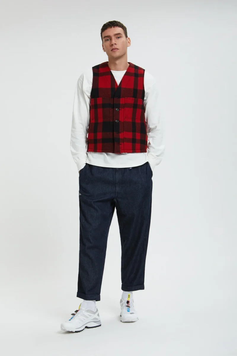 Il gilet di lana Mackinaw è parte integrante dell’equipaggiamento outdoor e si adatta a qualsiasi ambiente.