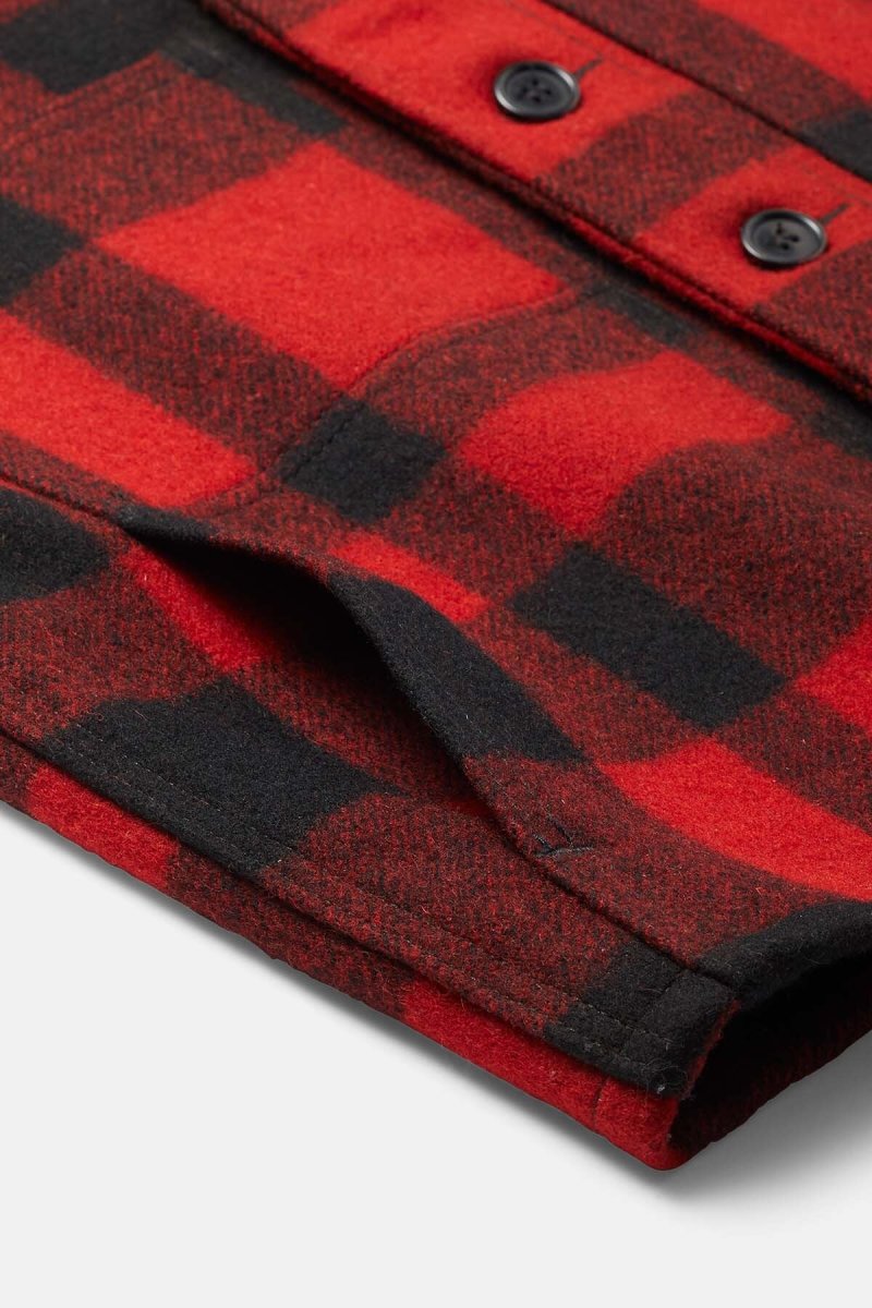 Il gilet in lana Mackinaw è altrettanto confortevole anche in ambienti di lavoro chiusi come magazzini, cantieri e uffici. Oltre a conferire un look classico, la scollatura a V non ingombra il collo e lascia spazio a una camicia pesante e a un impermeabile chiuso con una zip fino al mento. Le tasche per le mani hanno un bordo esterno rialzato per evitare che il contenuto scivoli via facilmente, mentre le tasche sul petto sono aperte a fessura.