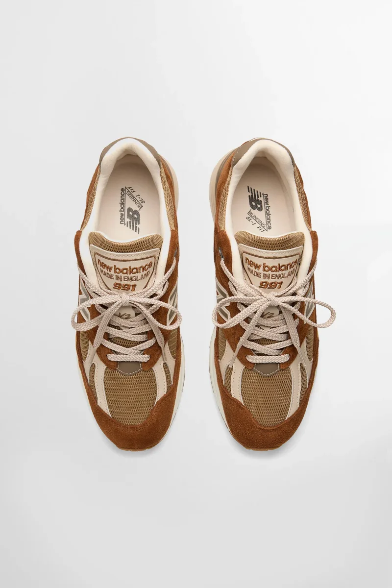 Il modello ‘Elevated Essentials’ MADE in UK 991v2 veste questa icona rivisitata con una palette di colori neutri facile da indossare. La tomaia in suede di cinghiale pregiata e mesh è realizzata in beige, con lievi accenti a contrasto che appaiono sulle cinghiette sintetiche della tomaia e sulla linguetta, entrambi resi in classico grigio.