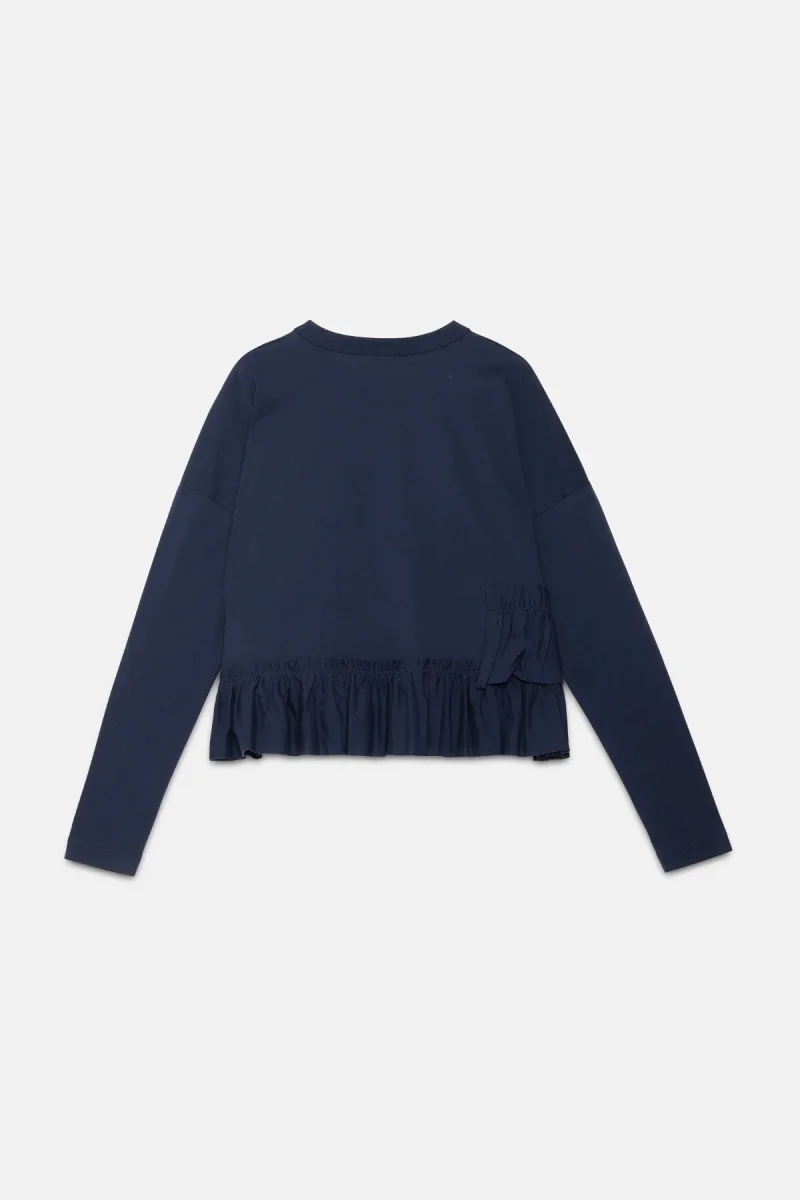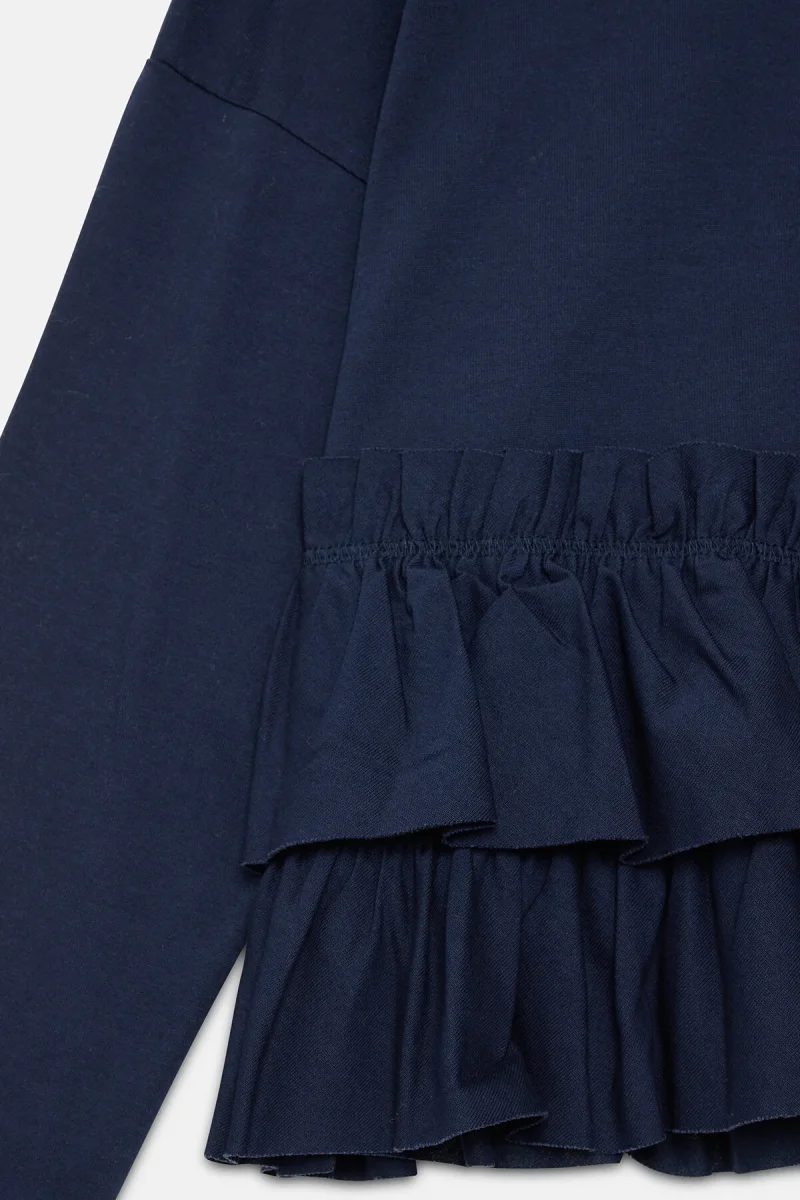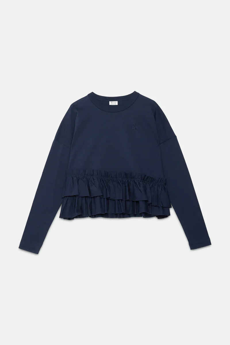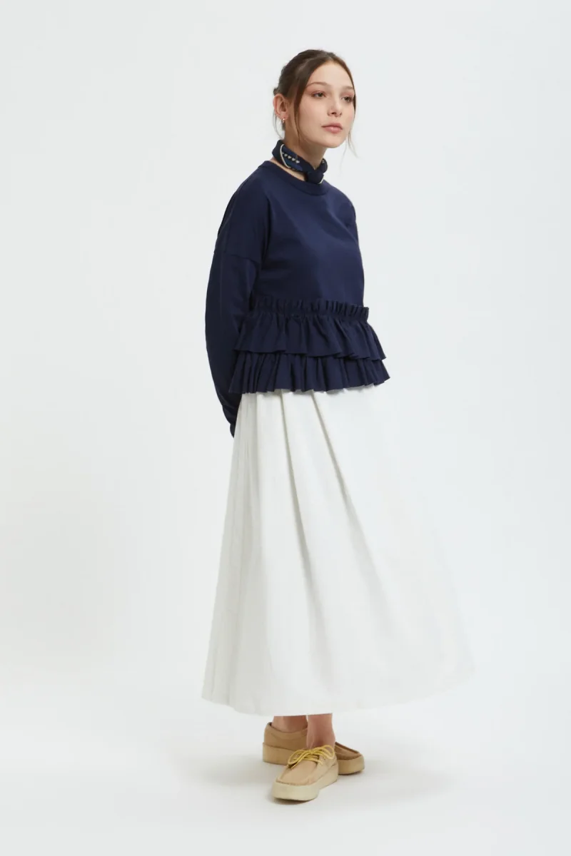 Questo top presenta un design audace con rondini ricamate, icona di RHODOLIRION. Ampie frange sono applicate in un motivo a spirale attorno alla vita, creando una silhouette a forma di A. Realizzato in jersey Basco 100% cotone, lavorato a maglia stretta con filo di cotone liscio. È un capo base che può essere facilmente sovrapposto come strato interno o indossato da solo.