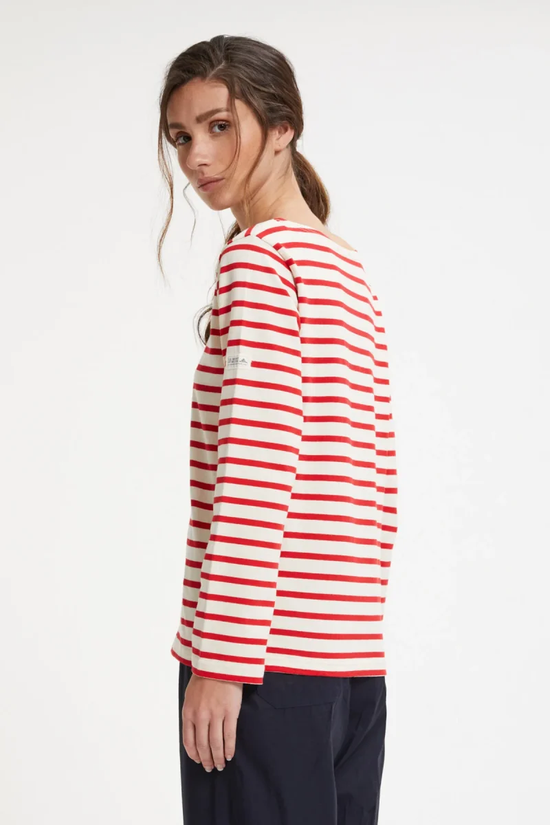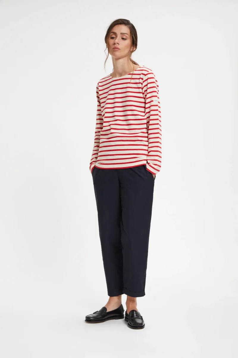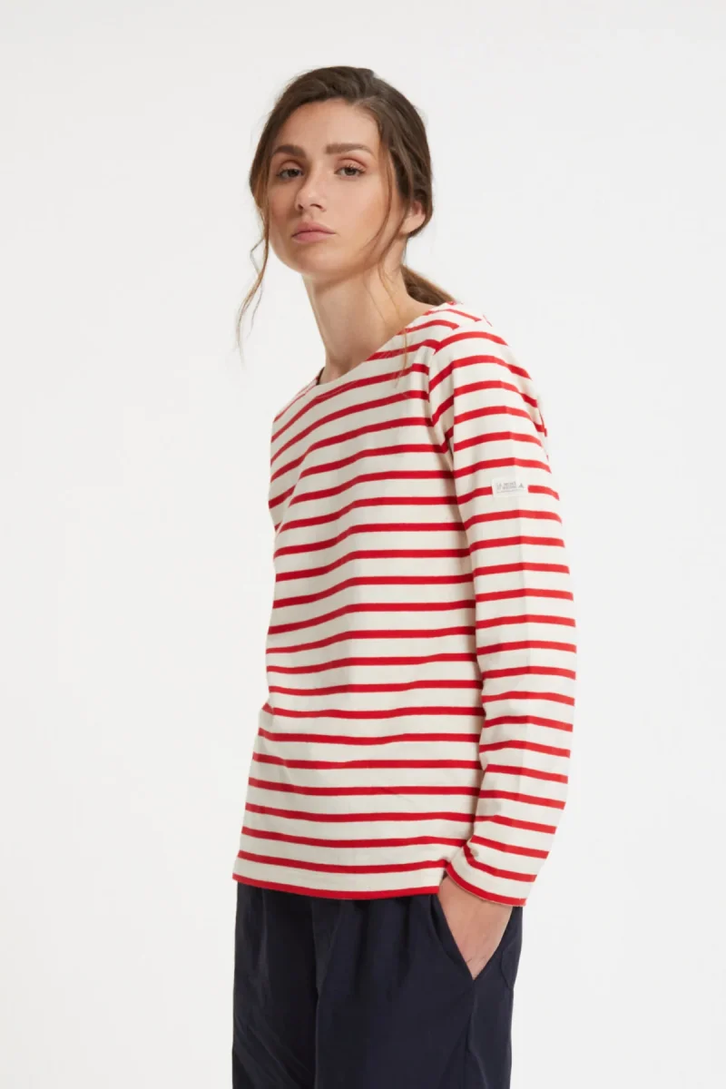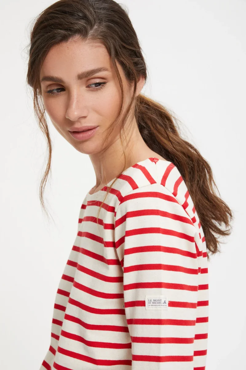 La maglia Tilda Mariniere a righe e maniche lunghe di Le Mont Saint Michel è un capo semplice quanto irrinunciabile. Realizzata al 100% in cotone è morbida e adatta per tutte le occasioni. Lo stile da marinaretto la rende divertente e adatta al tempo stesso ad outfit casual ed eleganti.