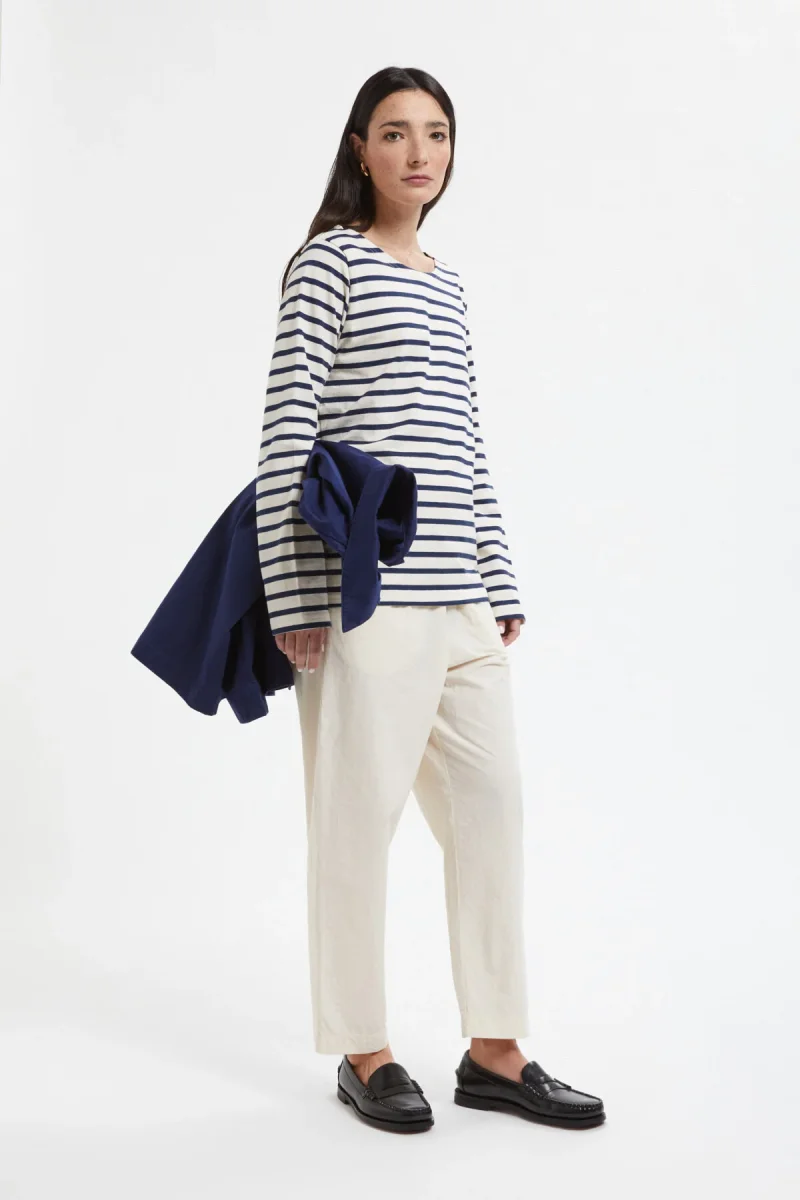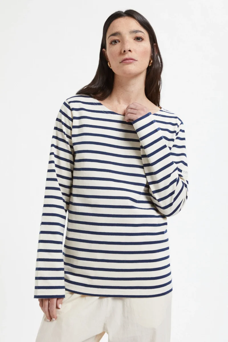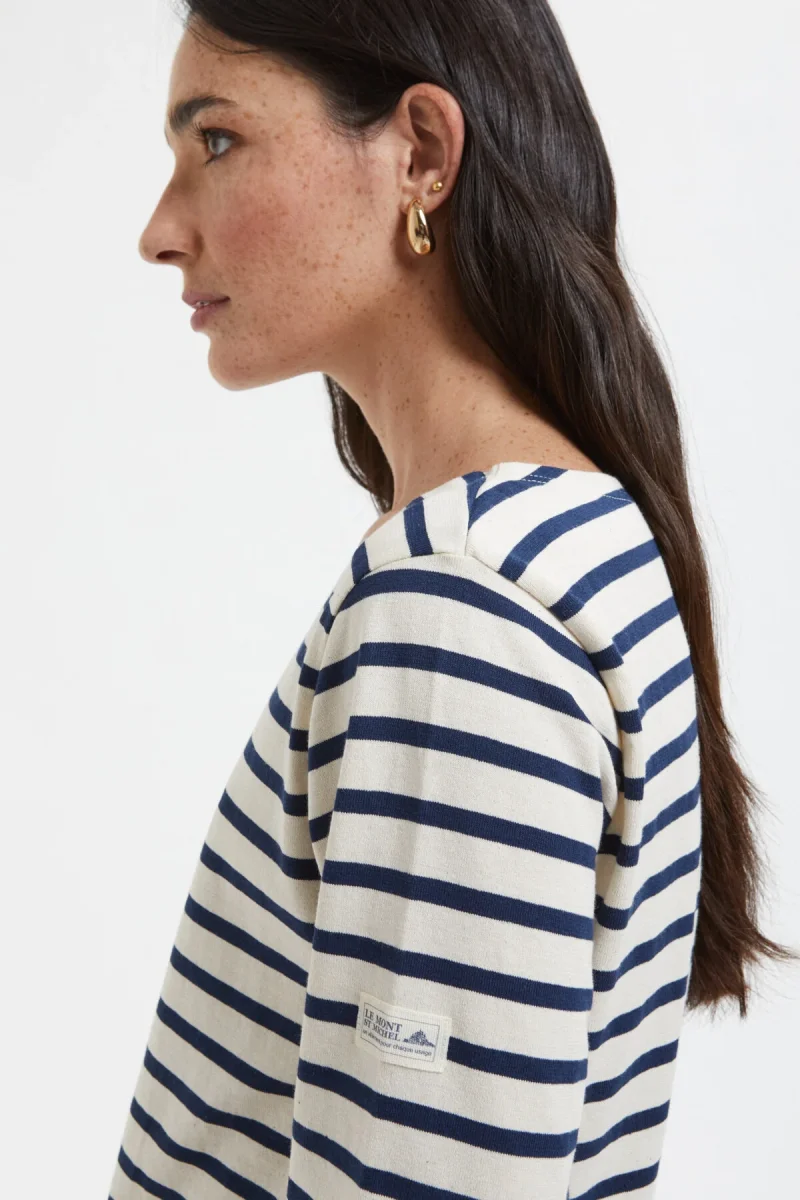 La maglia Tilda Mariniere a righe e maniche lunghe di Le Mont Saint Michel è un capo semplice quanto irrinunciabile. Realizzata al 100% in cotone è morbida e adatta per tutte le occasioni. Lo stile da marinaretto la rende divertente e adatta al tempo stesso ad outfit casual ed eleganti