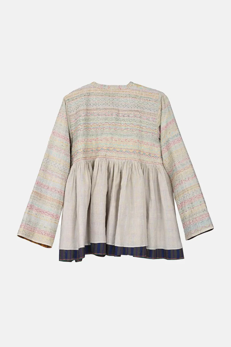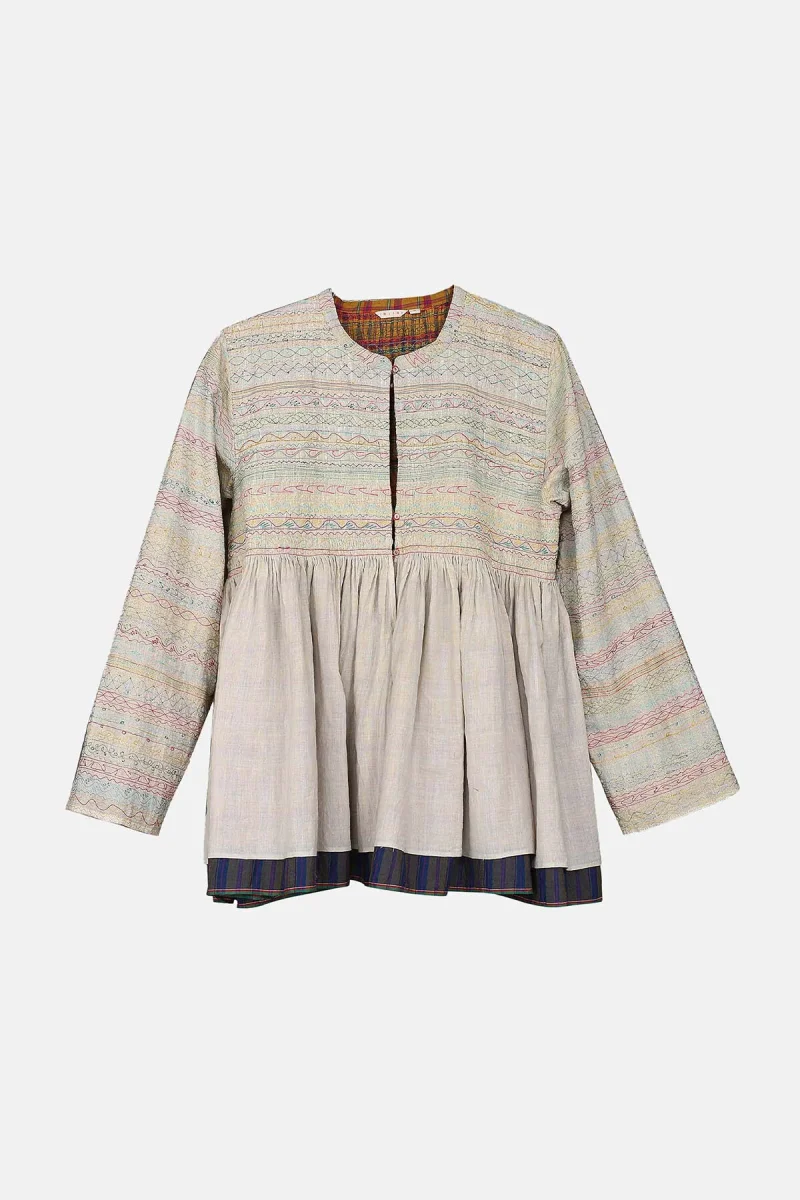 Maglia a maniche lunghe bianco sporco con fodera a quadri multicolor.