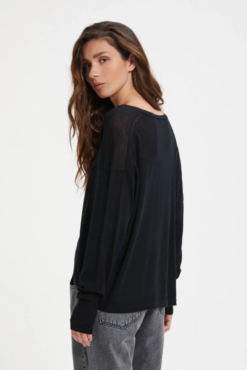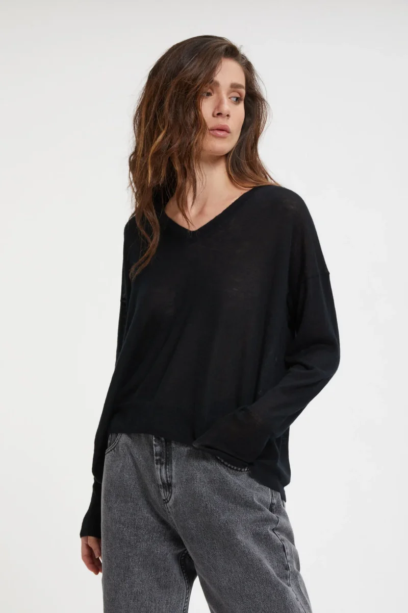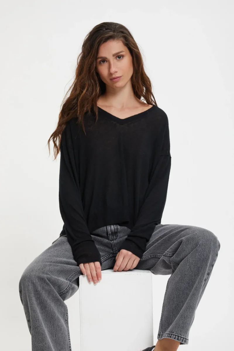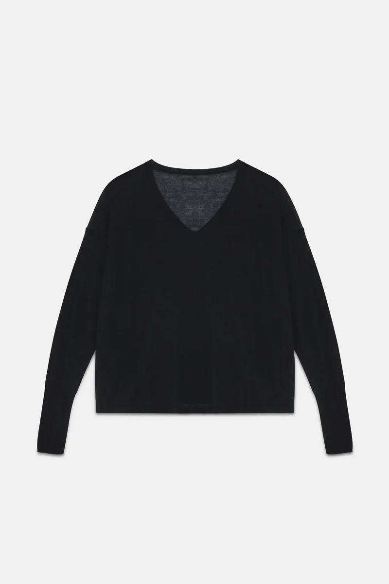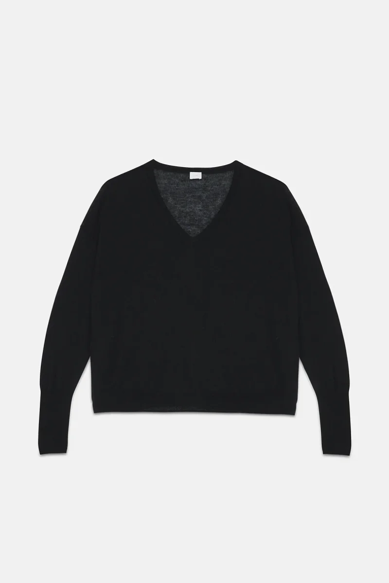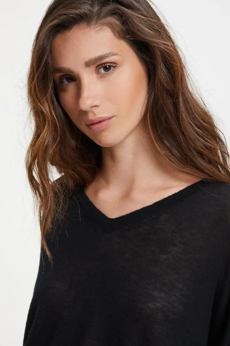 Maglia con scollo a V a maniche lunghe in puro cashmere. La vestibilità over offre il massimo del comfort e della libertà di movimento.