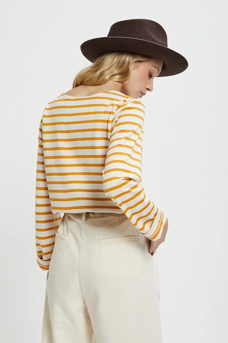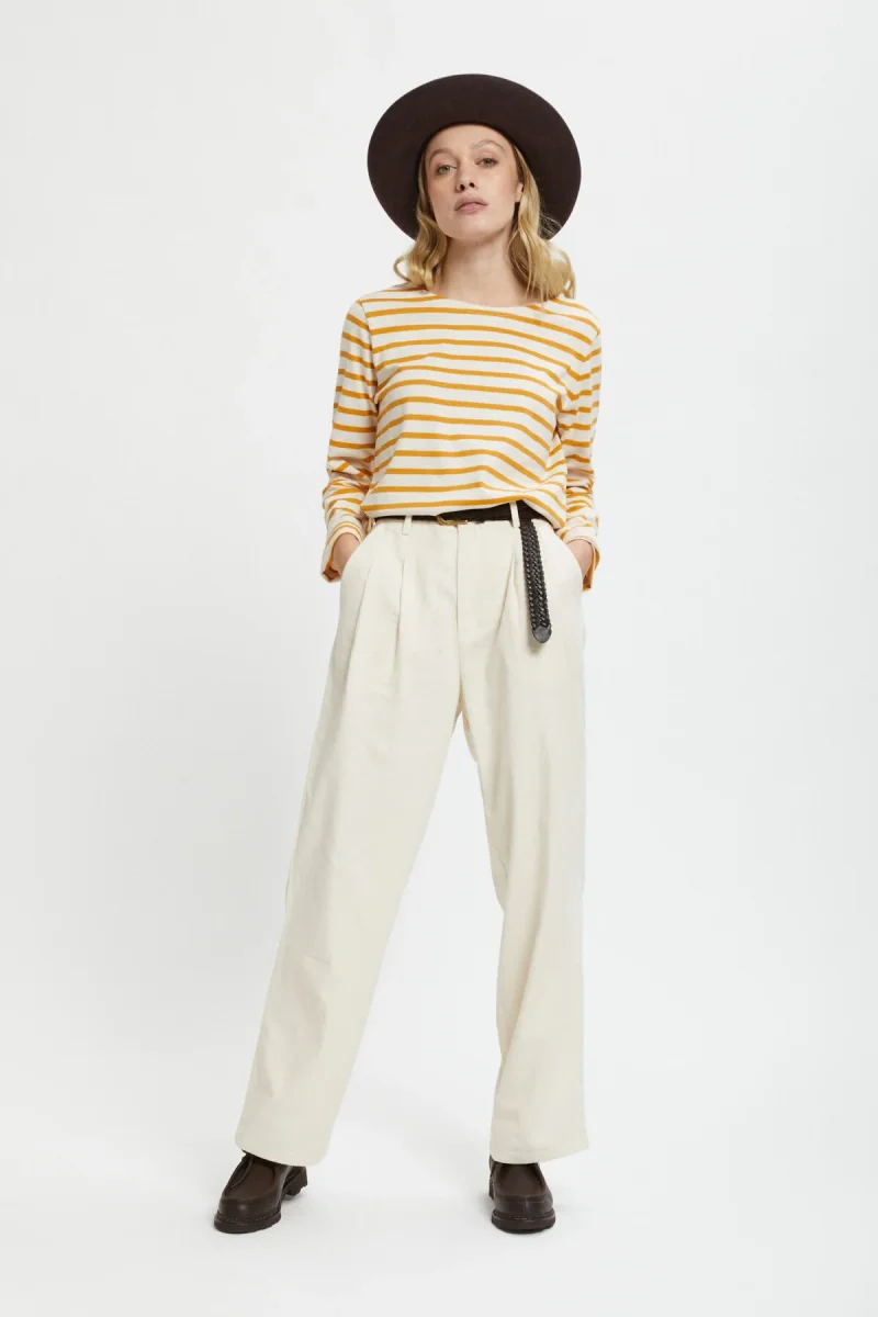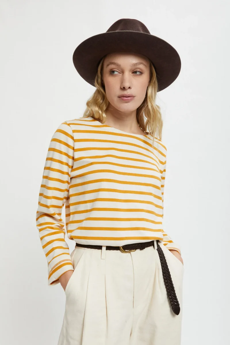 La maglia Tilda a righe e maniche lunghe di Le Mont Saint Michel è un capo semplice quanto irrinunciabile. Realizzata al 100% in cotone è morbida e calda, ideale da indossare negli ultimi giorni d’autunno e per le fredde giornate invernale. Lo stile da marinaretto la rende divertente e adatta al tempo stesso ad outfit casual ed eleganti.