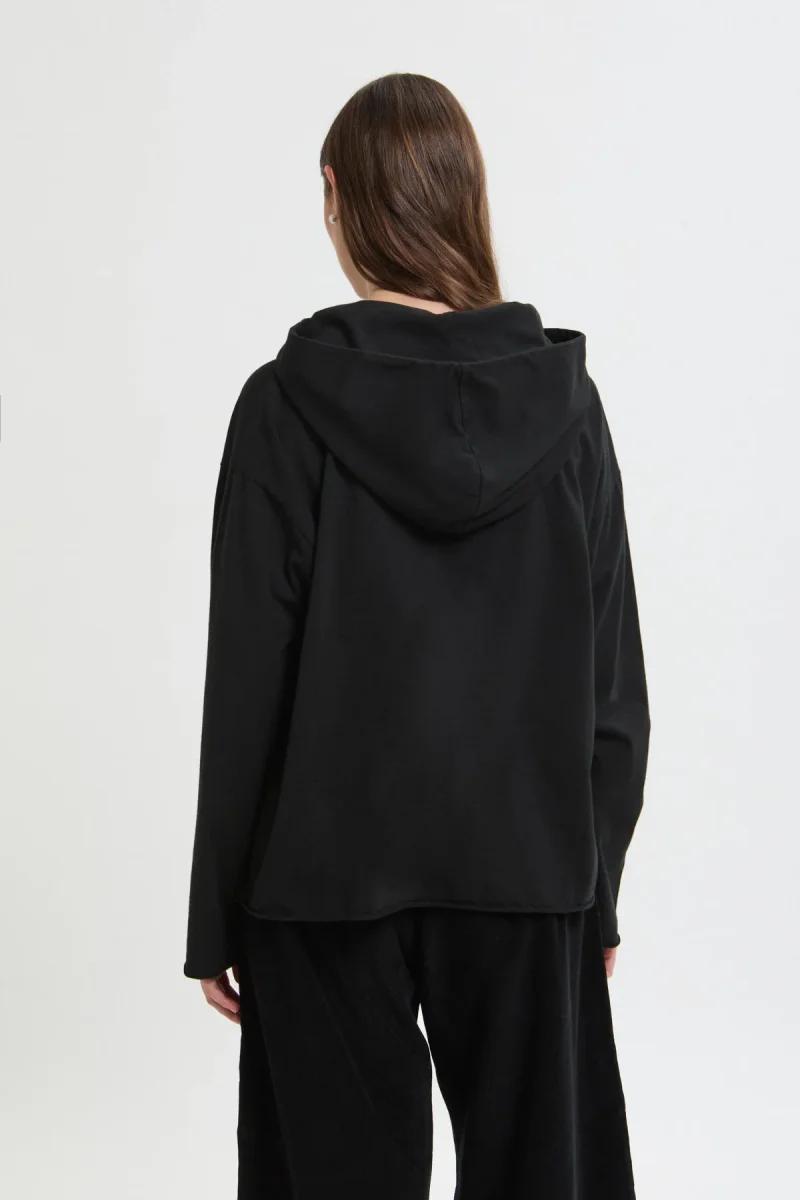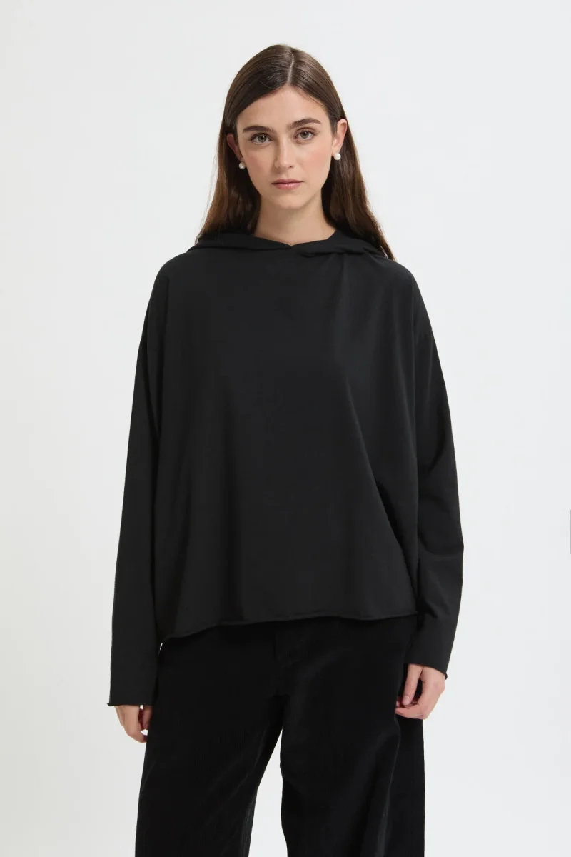 Un capo essenziale e senza tempo: la maglia Cocache con cappuccio unisce semplicità e carattere in un design pulito e contemporaneo.