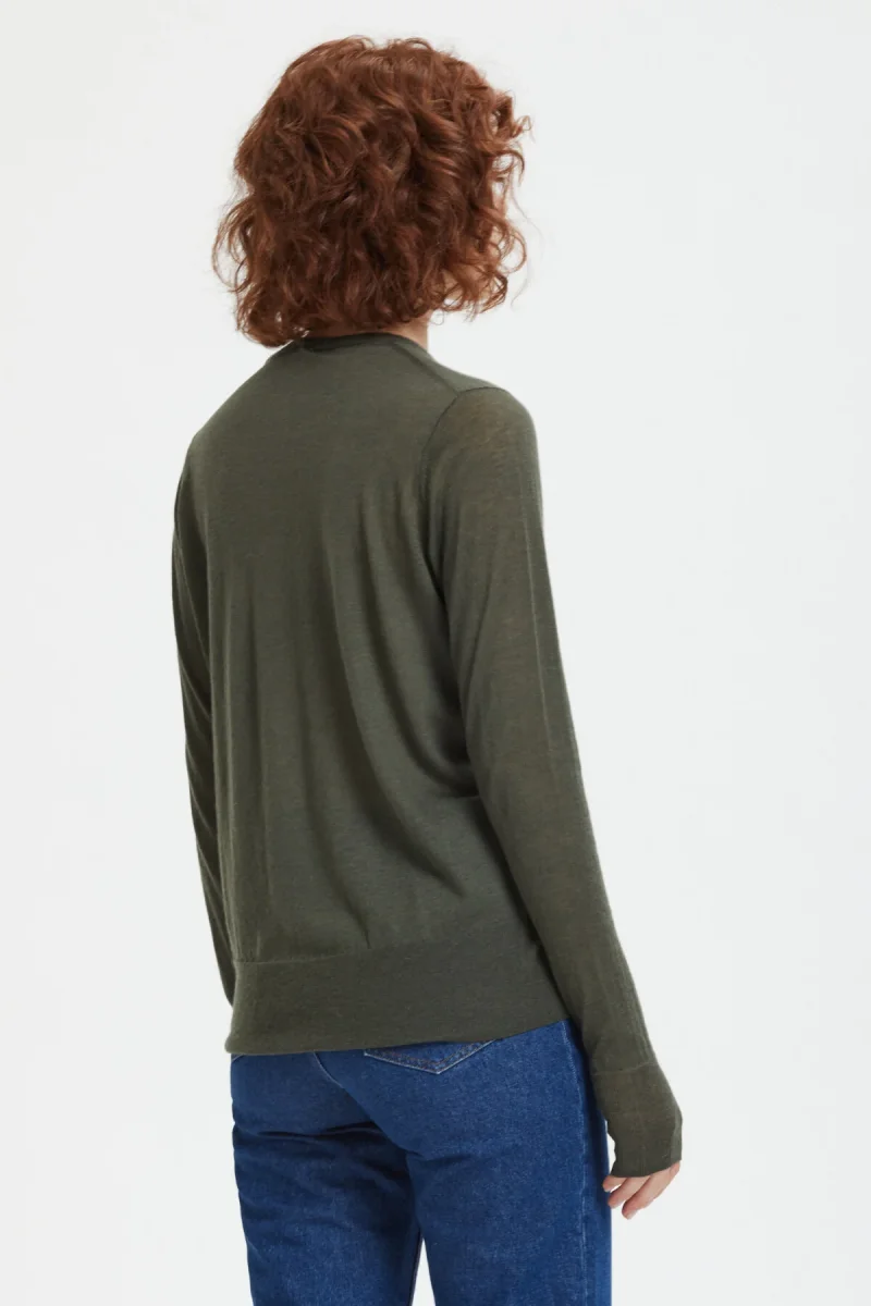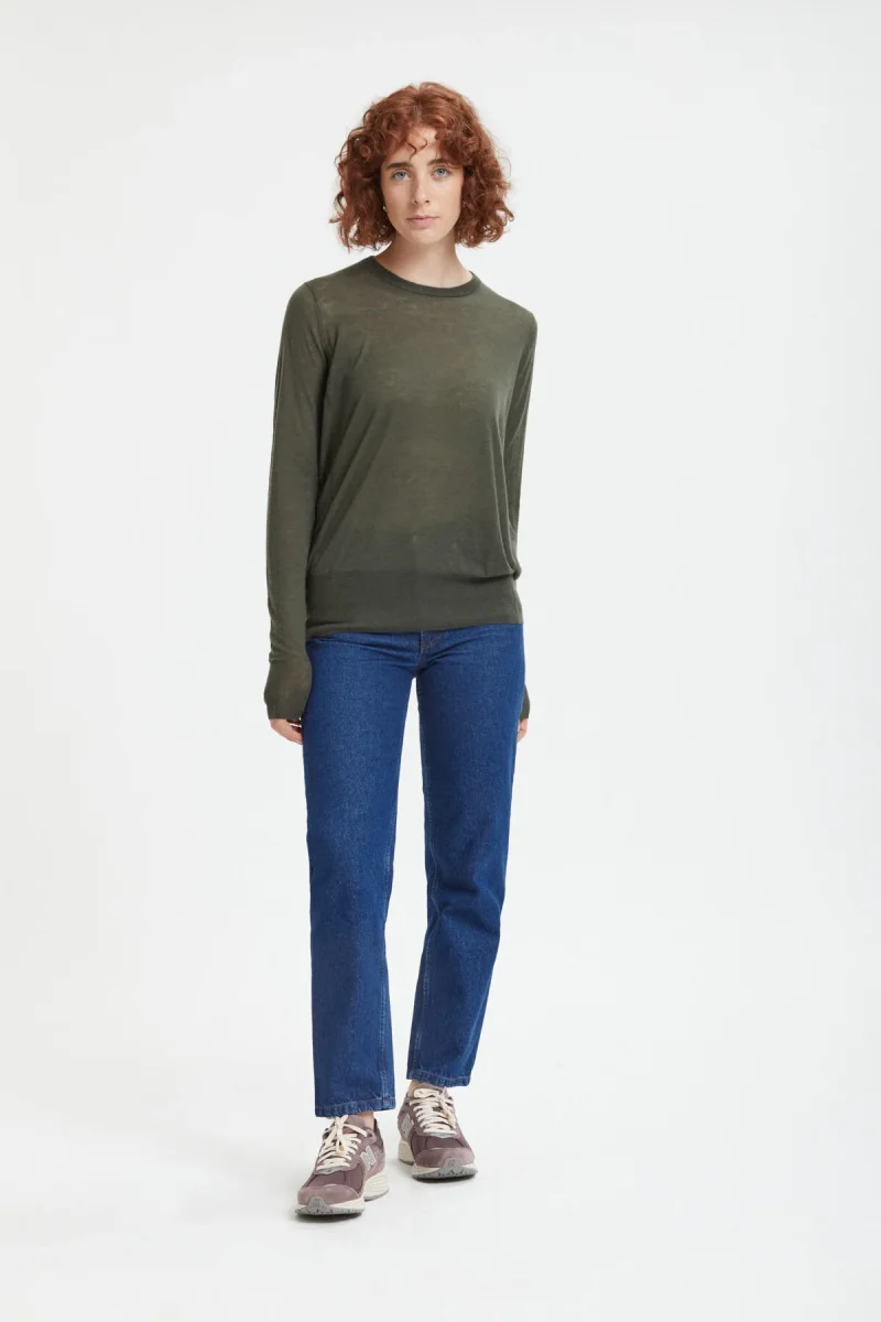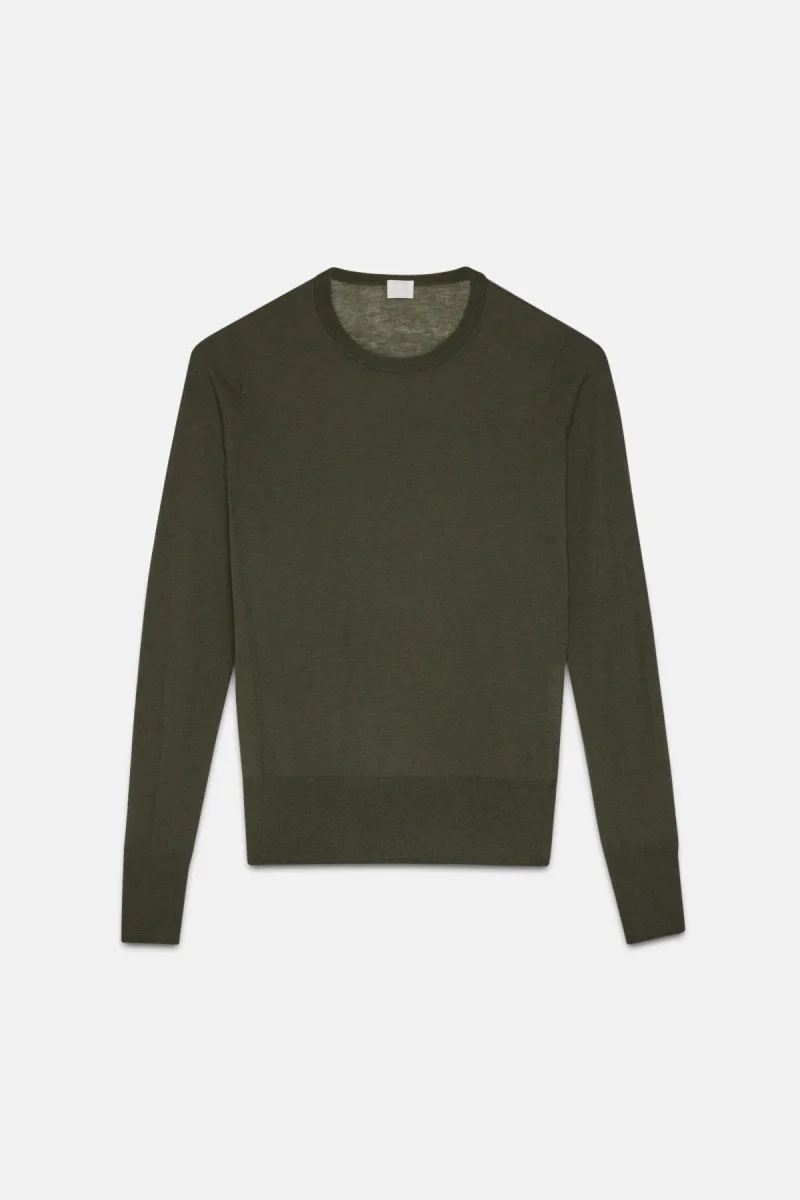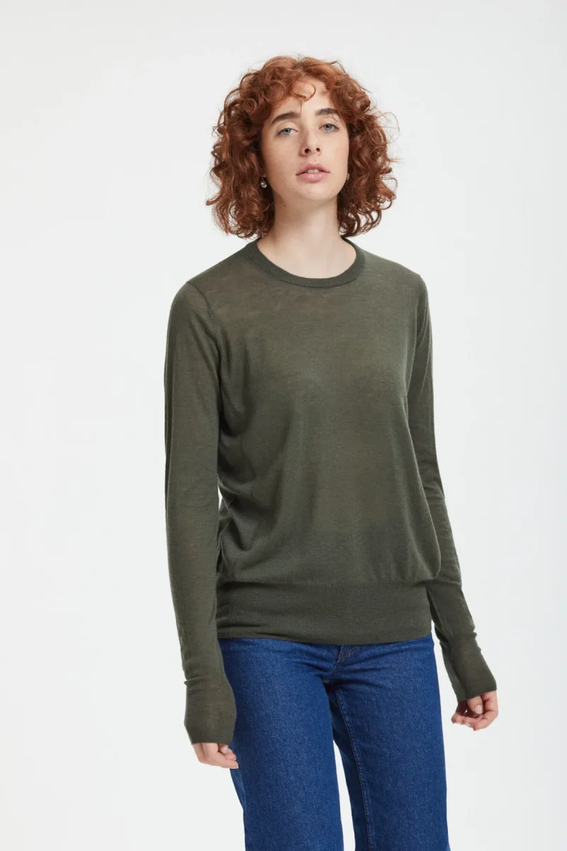 Maglia girocollo a maniche lunghe in lana leggera e semitrasparente. La vestibilità regular offre il massimo del comfort e della libertà di movimento.