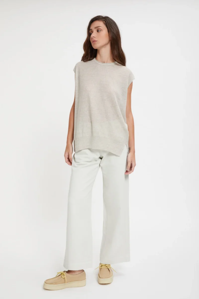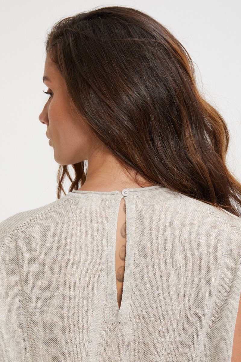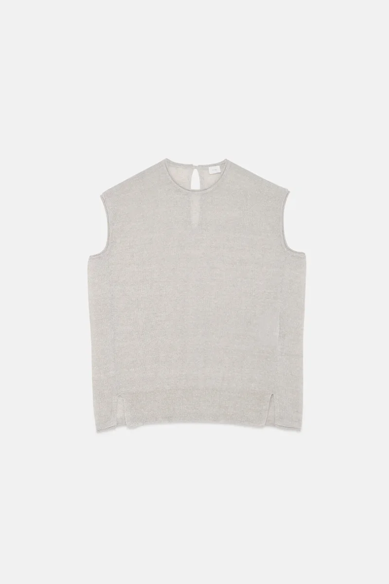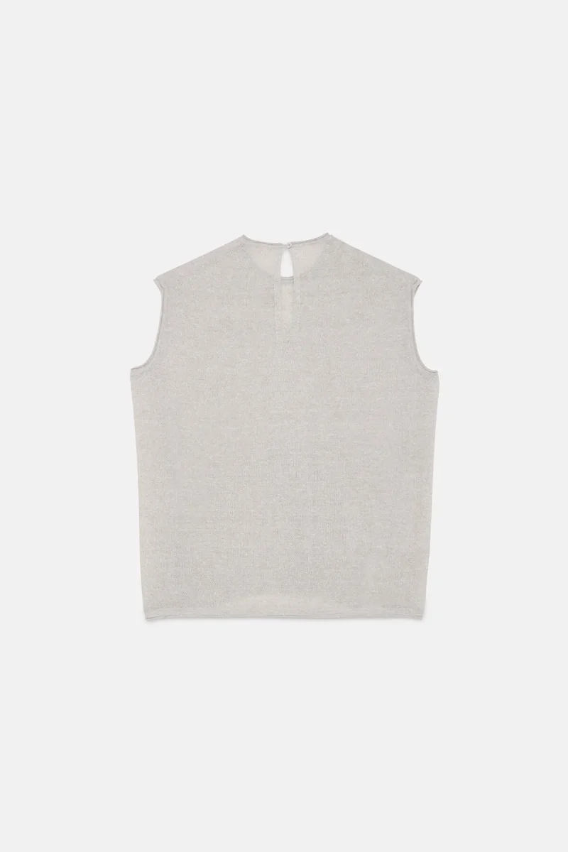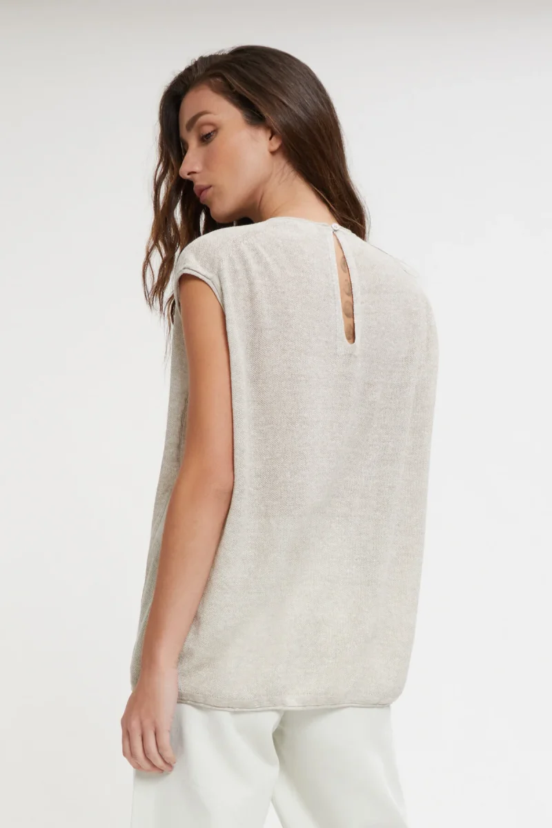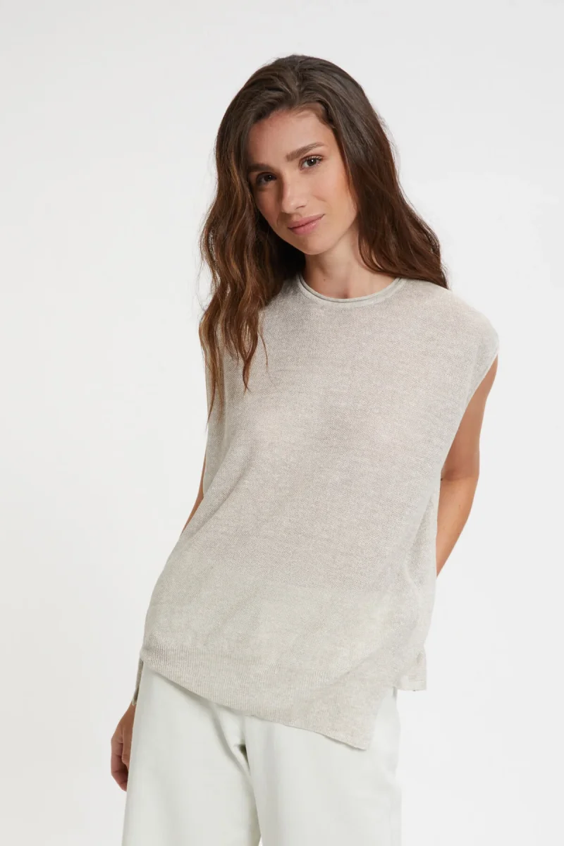 Maglia girocollo senza mancihe in lino dalla vestibilità regula. Fresca e leggera, adatta ai look primaverili e estivi.