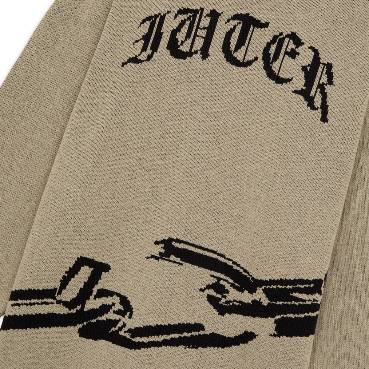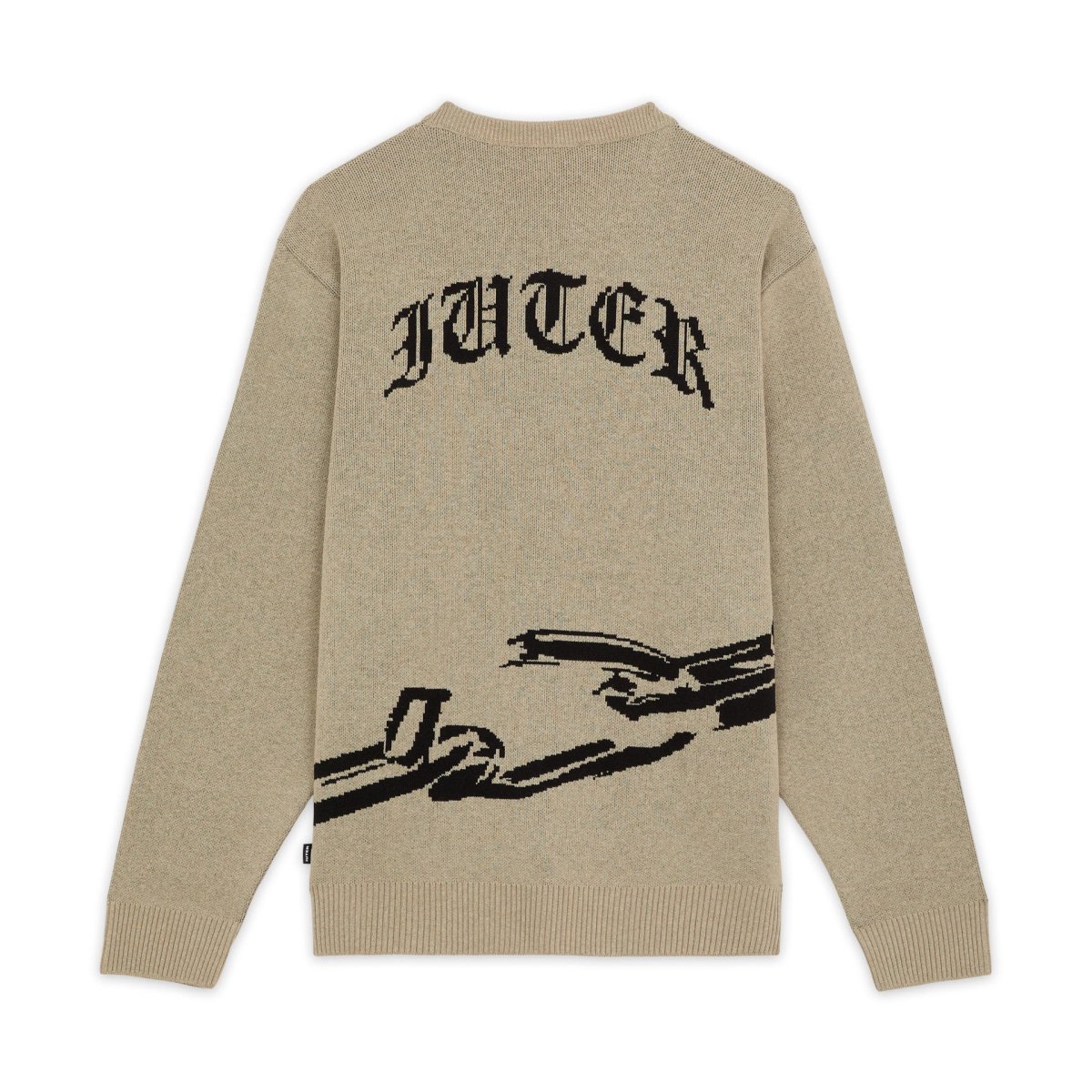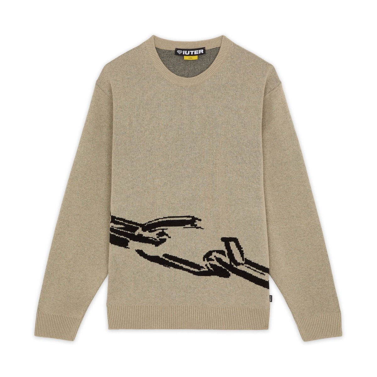 Maglia girocollo Iuter modello chain jumper colore beige con stampa frontale 100% cotton Made in Italy fit regolare.