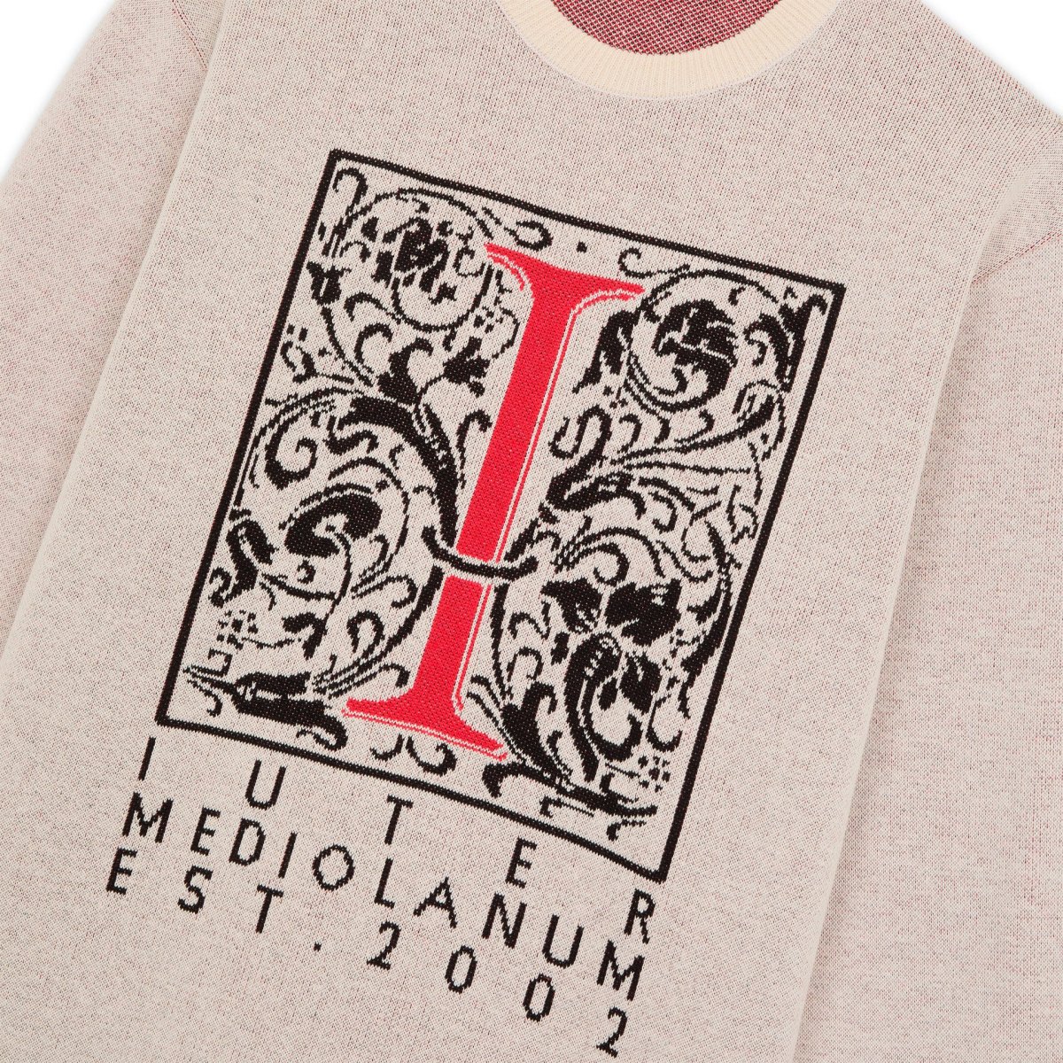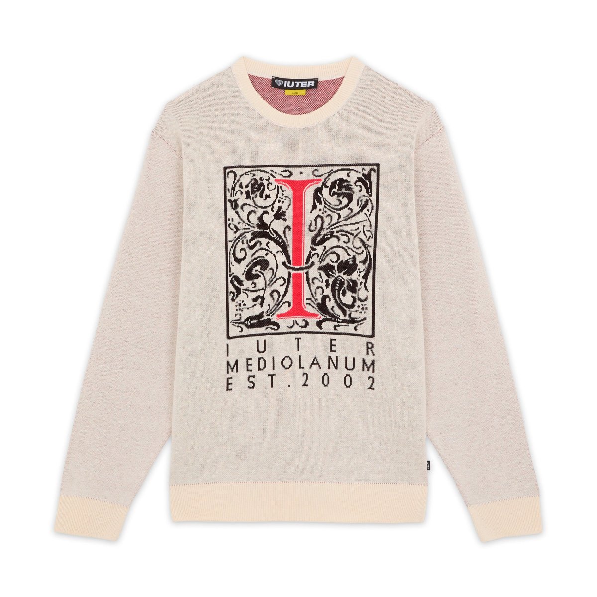 Maglia Iuter modello mediolanum jumper colore sabbia con stampa frontale fit regolare 100% cotton Made in Italy.