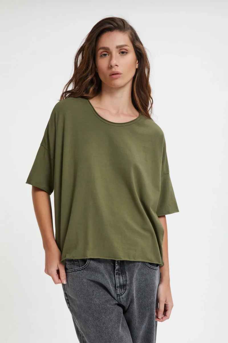 Maglia girocollo Labo.Art in jersey di cotone, vestibilità ampia e maniche corte. Made in Italy.
