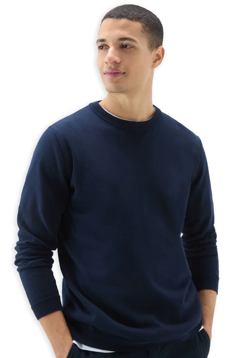 Maglia girocollo Woolrich colore blu da uomo modello slim in morbido cotone da abbinare ai tuoi look smart casual.
