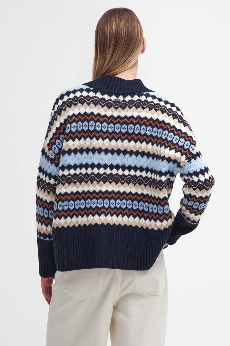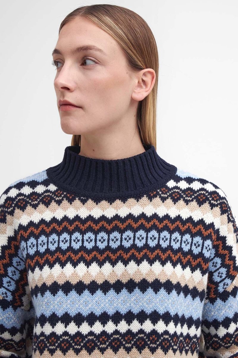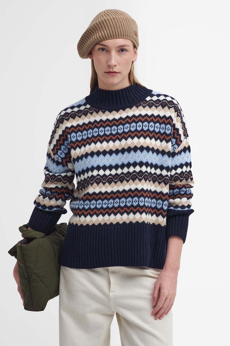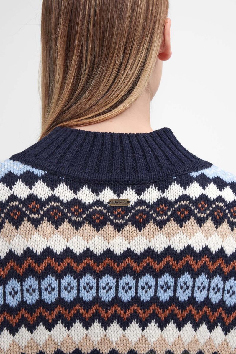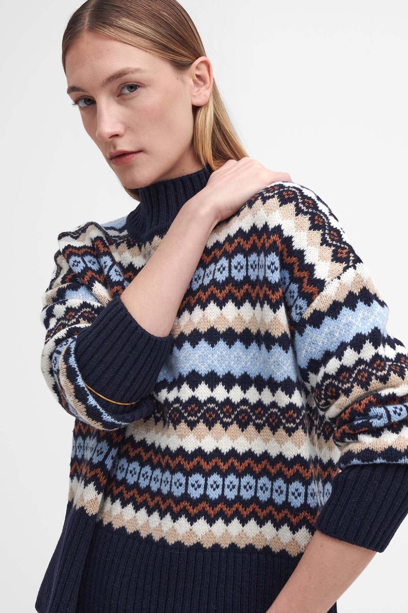 Realizzato in morbido misto lana e cotone, il maglione Larisa Fair Isle di Barbour è un must-have che ti accompagnerà durante le giornate più fredde. Caratterizzato da un’accogliente scollatura a imbuto e da bordi a coste sottili, questo modello a maniche lunghe presenta un vivace disegno fair isle multicolore che gli conferisce una finitura audace ma elegante.