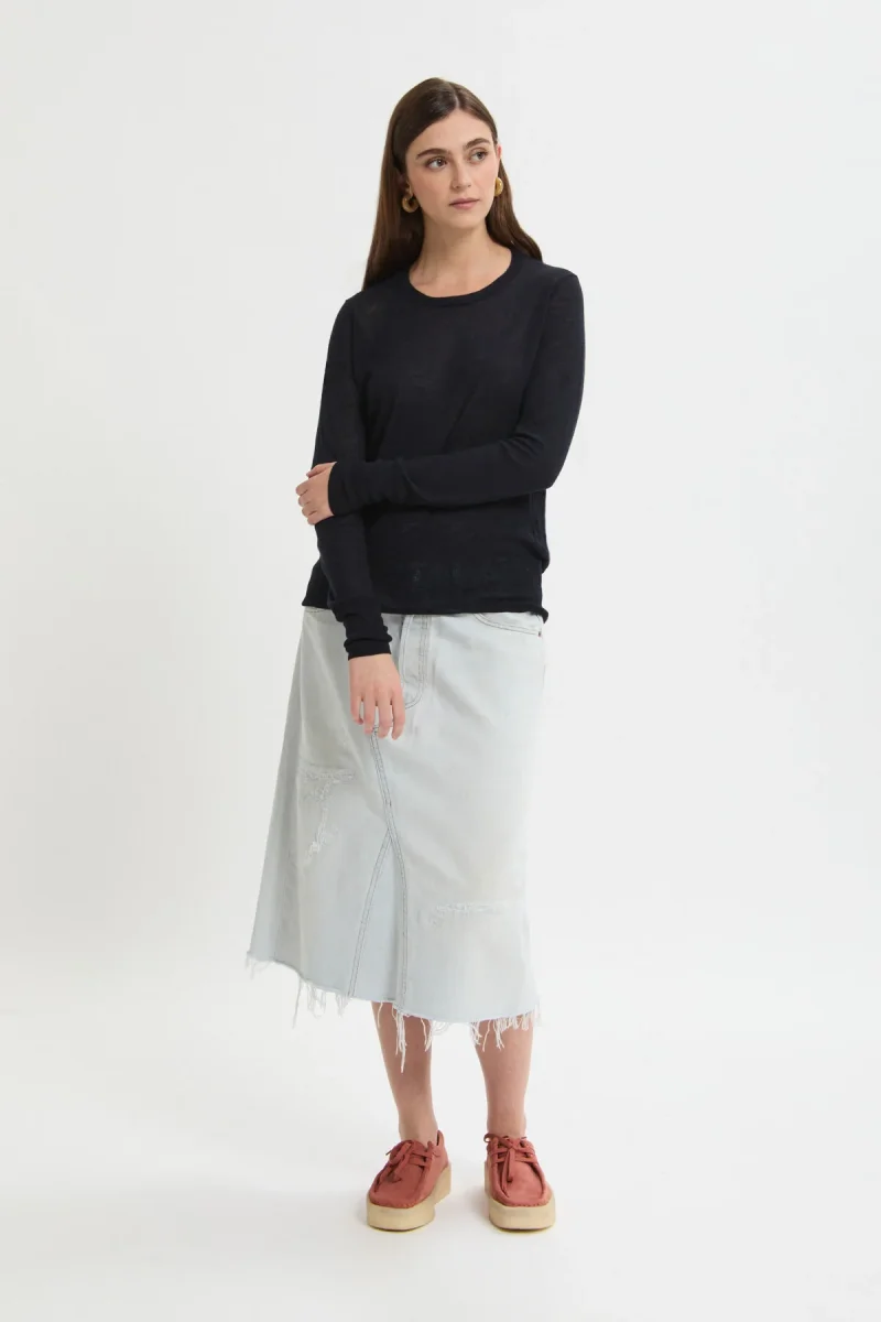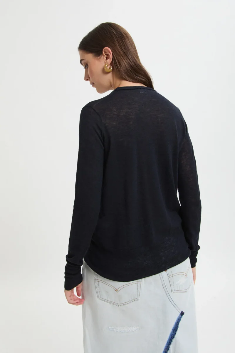 Maglia girocollo a maniche lunghe realizzata in lana leggera e dalla texture semitrasparente. Caratterizzata da una vestibilità regular, assicura comfort e libertà di movimento, ideale per creare look essenziali e contemporanei in ogni occasione.
