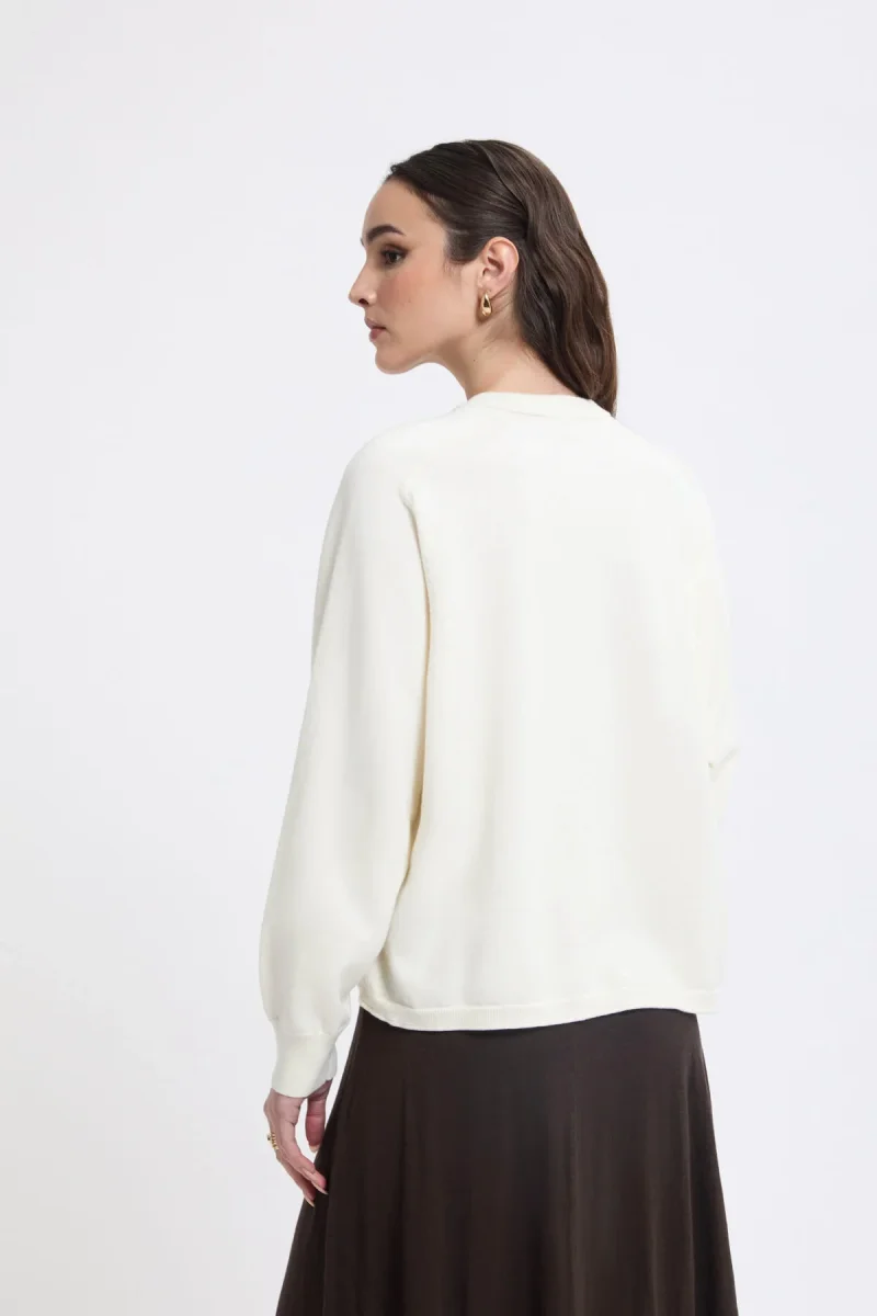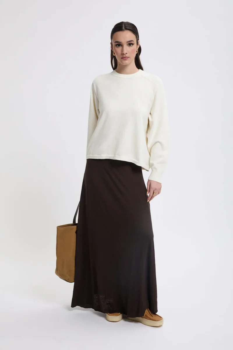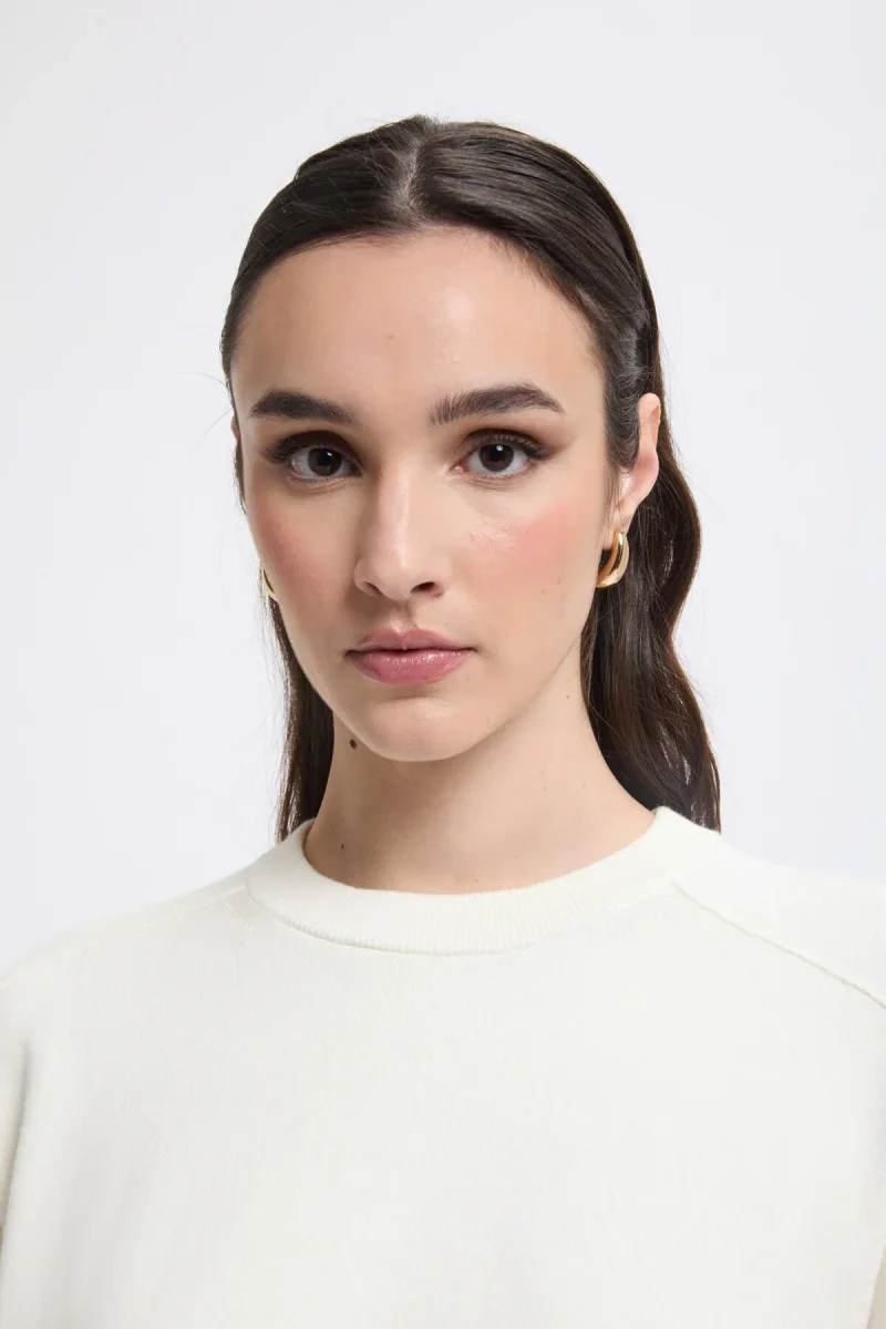 Questo pullover combina l’impareggiabile morbidezza del cashmere con la freschezza del cotone, creando un tessuto estremamente confortevole. La maglia, leggermente più spessa del solito, è rifinita come una felpa, offrendo un’alternativa raffinata e casual. La silhouette a trapezio, con una lunghezza corta, conferisce al capo un tocco moderno e dinamico. Un ulteriore dettaglio di pregio è il logo ricamato sul retro del collo. La praticità è garantita dalla possibilità di lavare il pullover a mano, mantenendolo sempre in perfette condizioni.