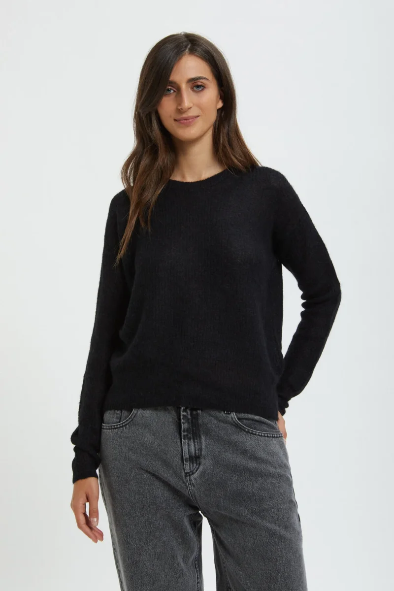Realizzato in misto alpaca e lana, questo caldo maglione presenta il girocollo e profili a costine.