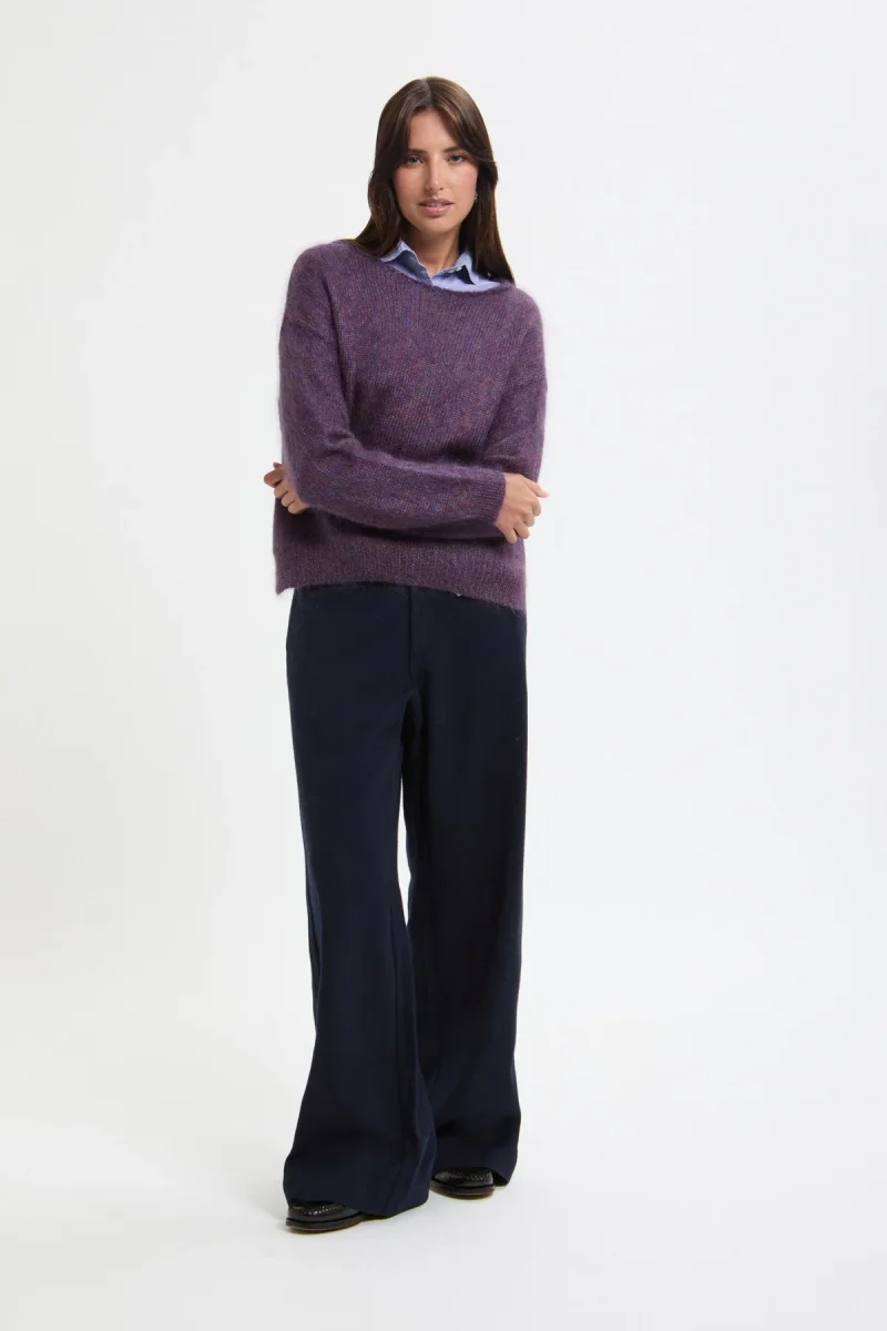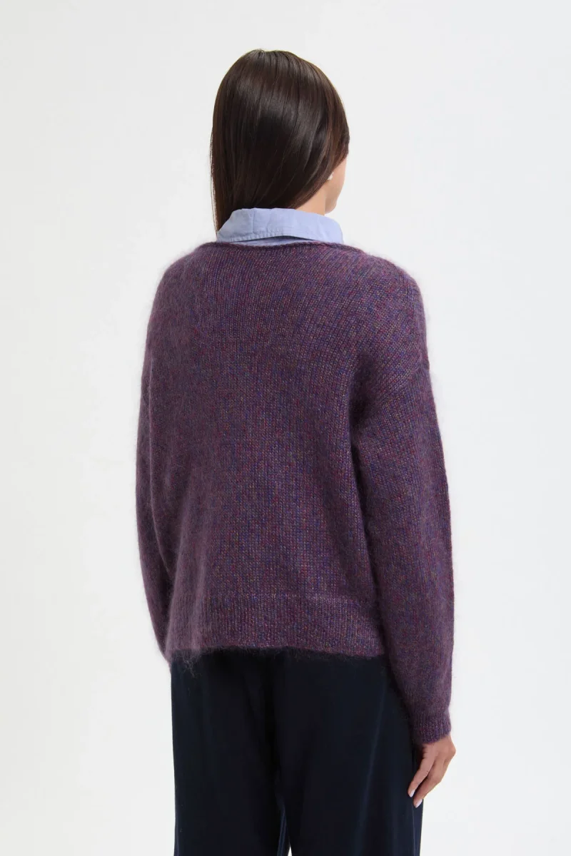 Realizzato con una miscela di lana giapponese, seta ultra-fine e pregiato mohair super-kid, questo pullover è incredibilmente morbido al tatto e ha un’elegante lucentezza.