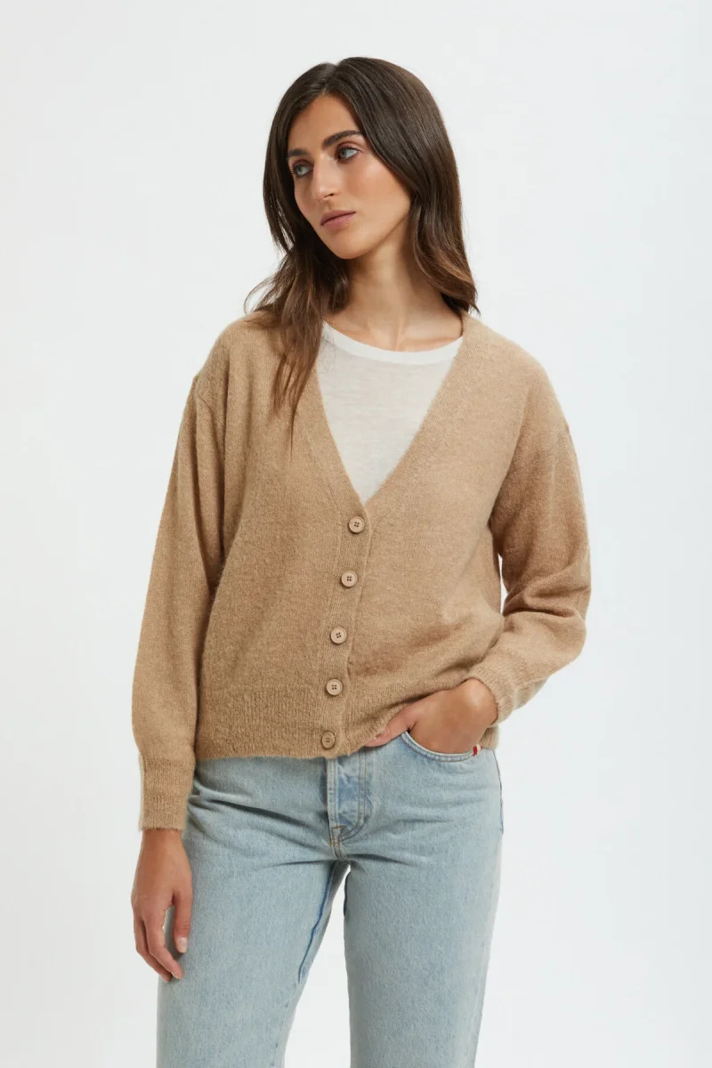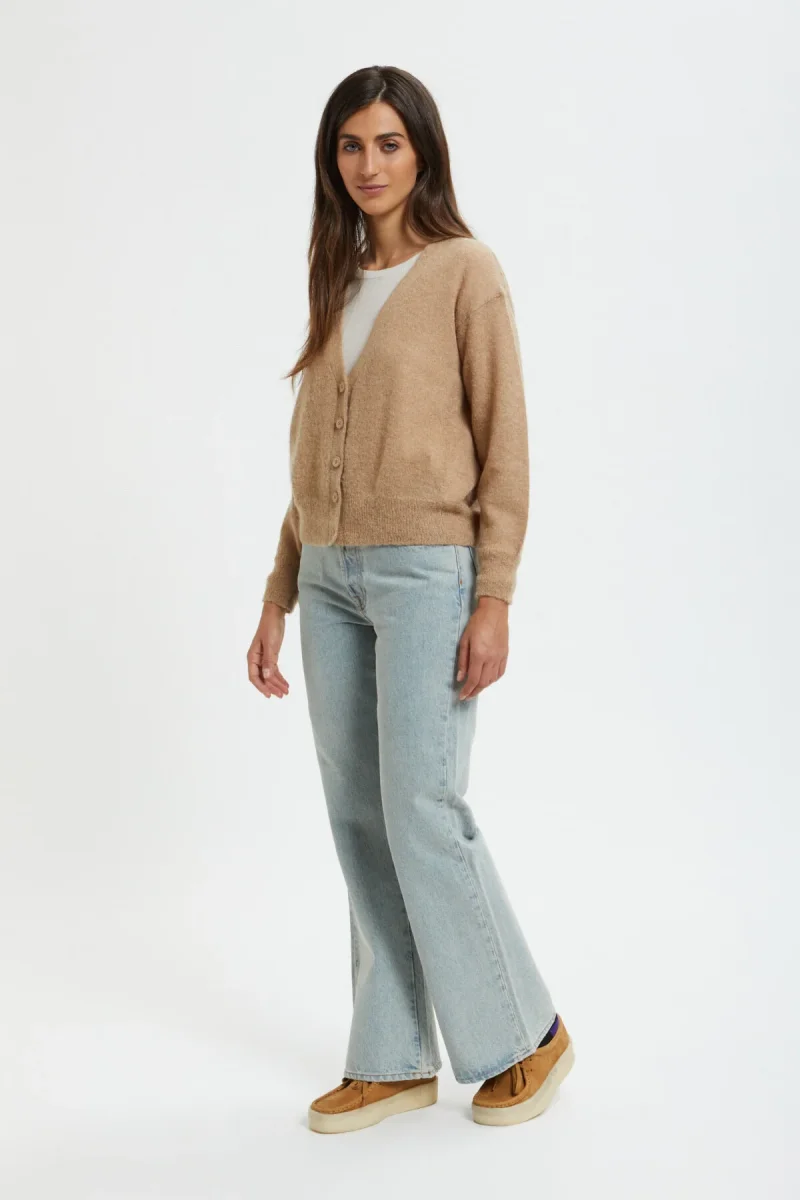 Realizzato in misto alpaca e mohair, questo caldo maglione presenta lo scollo a V e profili a costine.