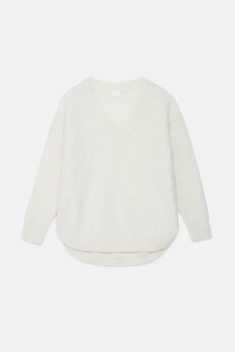 Realizzato in misto alpaca, questo caldo maglione presenta lo scollo a V e orlo stondato più lungo sul retro.