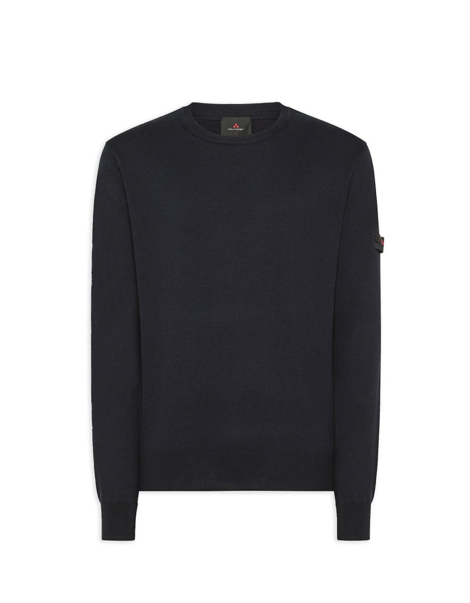 Maglione girocollo Peuterey modello Exmoor in tricot misto lana e cotone con collo e vita a costine.