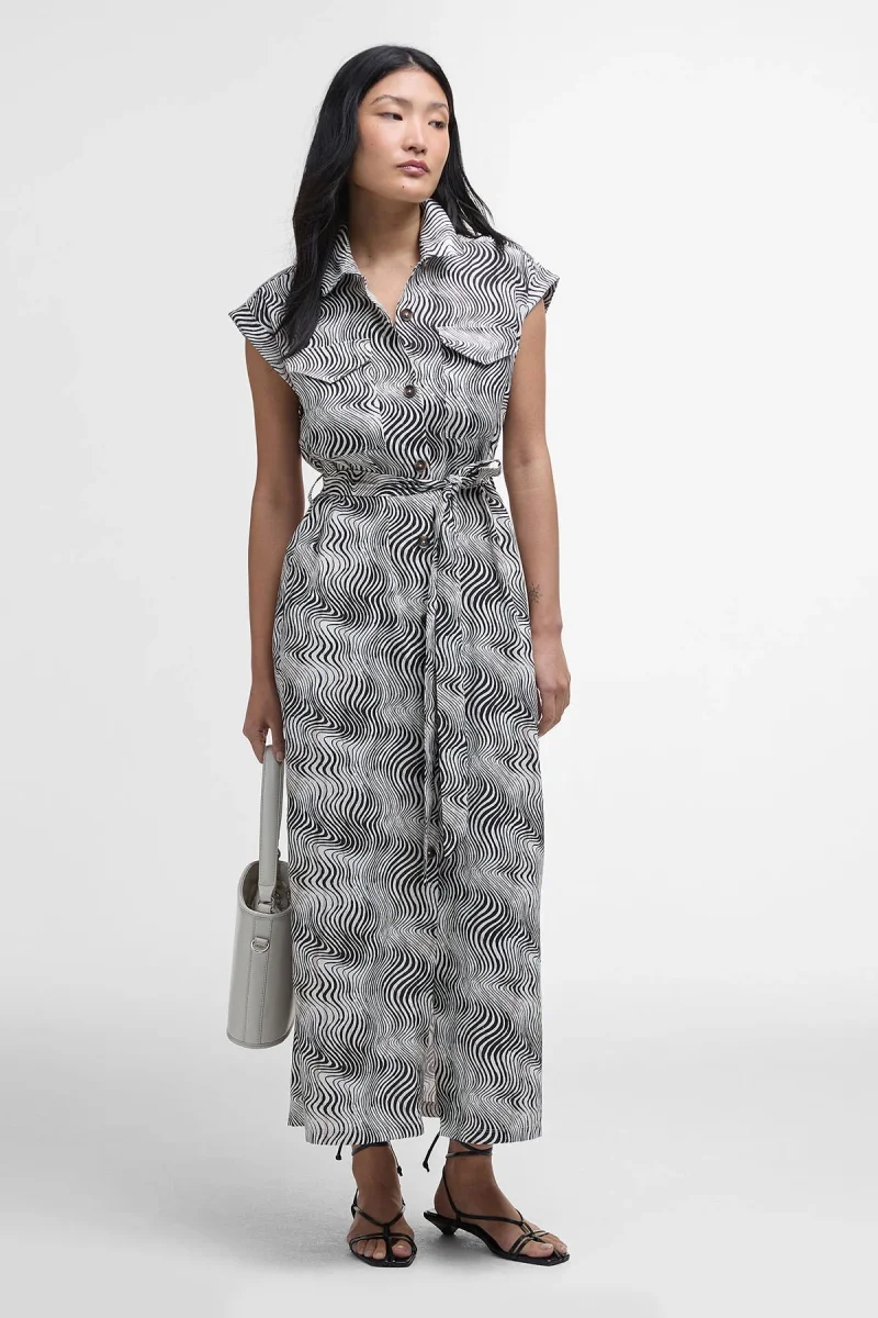 Il maxi abito Romy in stile chemisier di Barbour presenta una stampa animalier all-over e una classica chiusura con bottoni sul davanti. Dotato di una cintura da annodare in vita che esalta al massimo la figura, questo modello può costituire la base sia per i look più raffinati che per quelli più disinvolti.