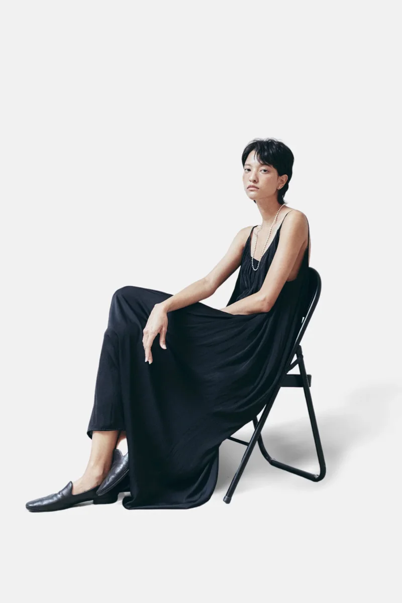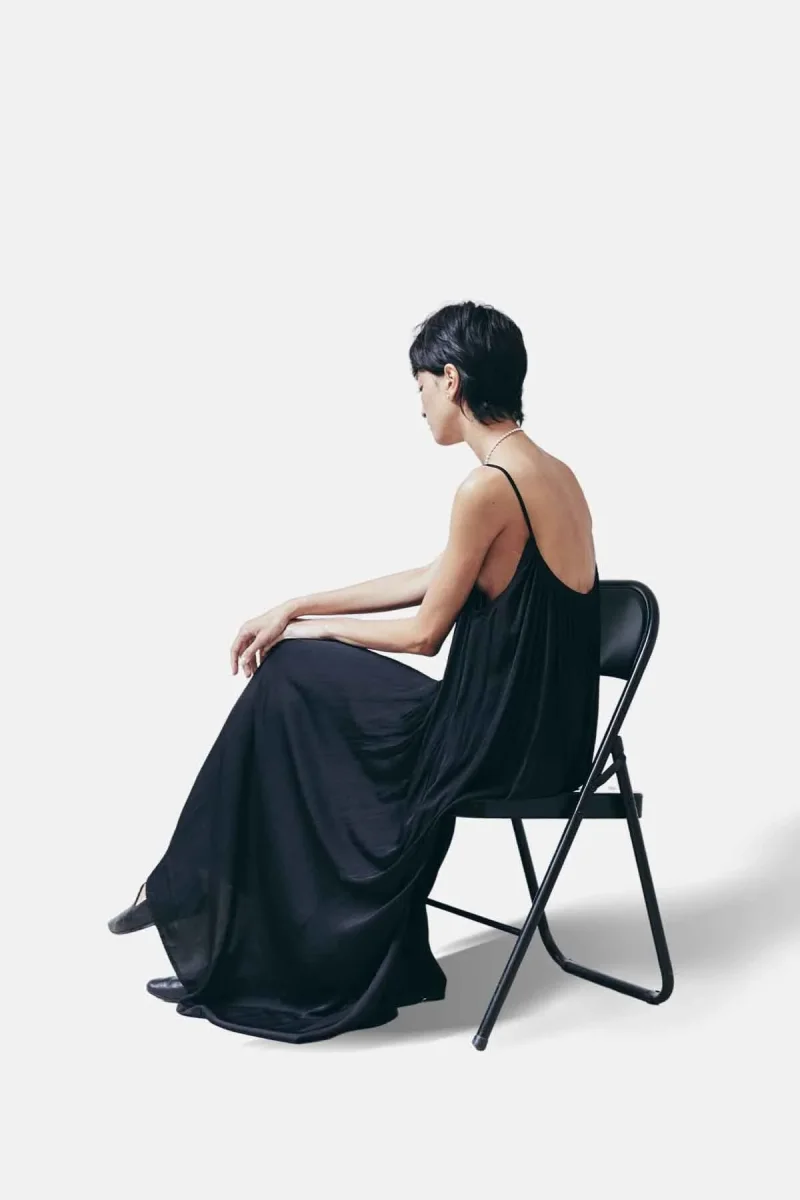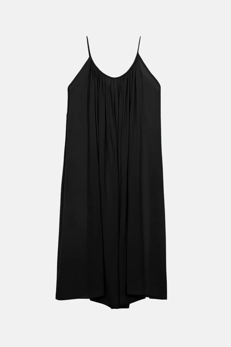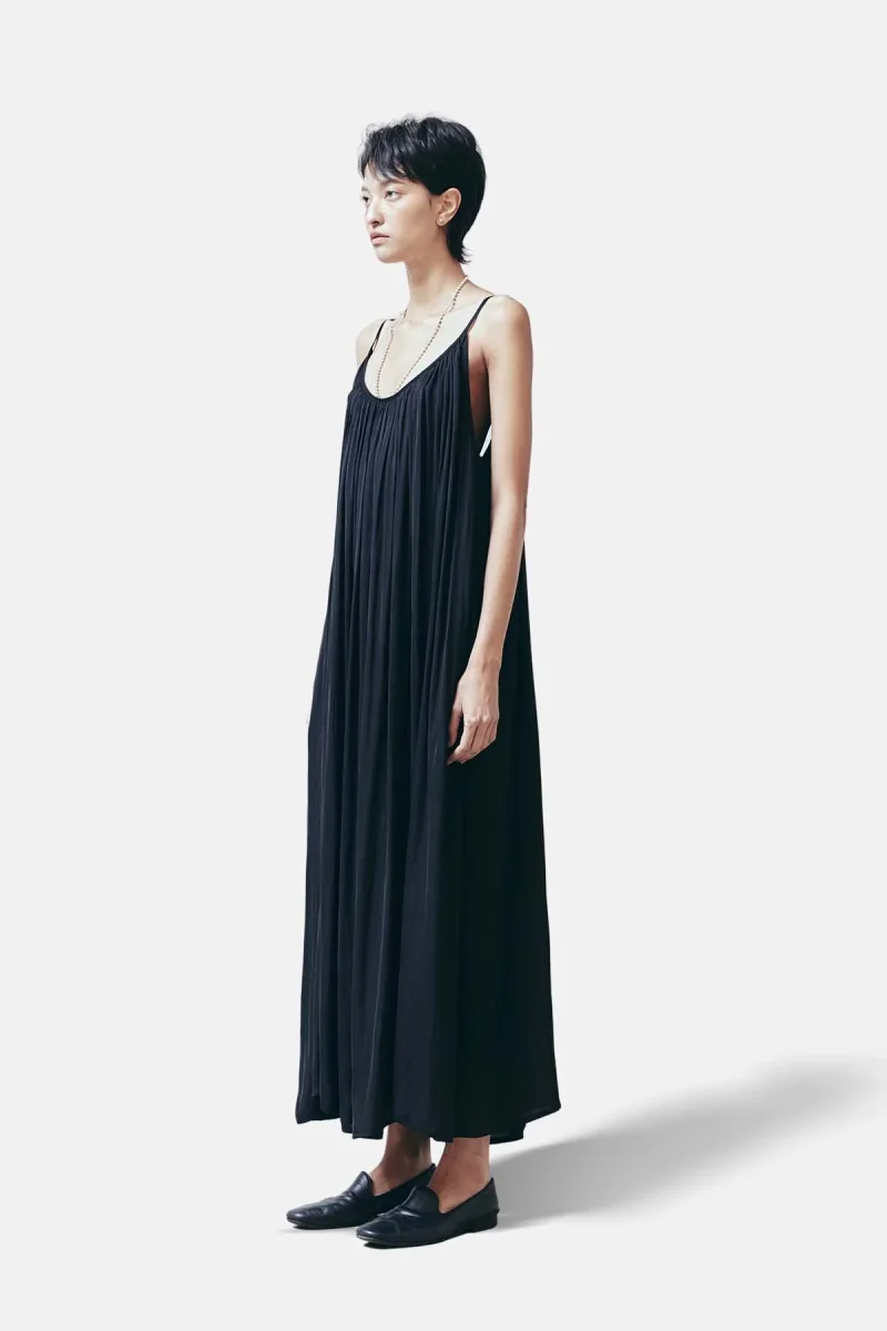 Maxi abito plissettato senza maniche con scollatura profonda sul retro.